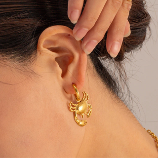 ステンレス304 低ニッケル 水に濡れても錆びにくい 18Kゴールドメッキ ピアス カニ 【YJ01164】