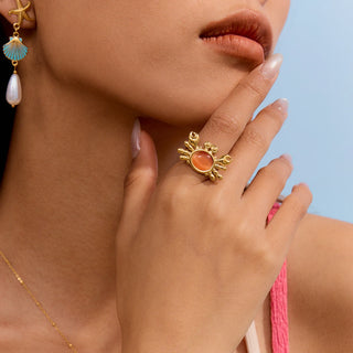 ステンレス304 低ニッケル 水に濡れても錆びにくい 18Kゴールドメッキ リング カニ 【YJ01176】
