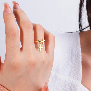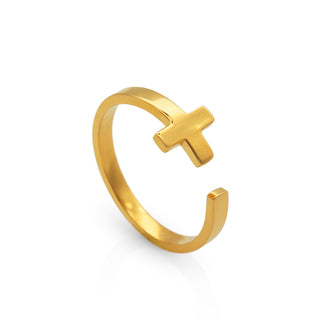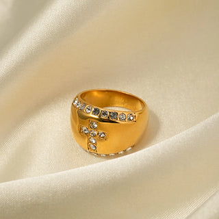 ステンレス304 低ニッケル 水に濡れても錆びにくい 18Kゴールドメッキ リング チャンキー クロス ジルコニア 【YJ02223】