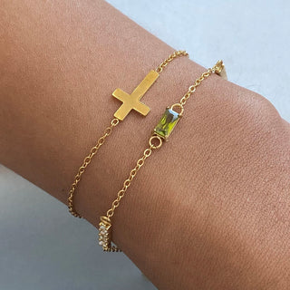 ステンレス304 低ニッケル 水に濡れても錆びにくい 18Kゴールドメッキ ブレスレット チャーム クロス 誕生石 【YJ02774】
