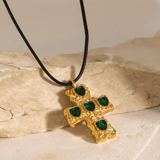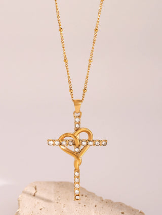 ステンレス304 低ニッケル 水に濡れても錆びにくい 18Kゴールドメッキ ネックレス クロス ハート ジルコニア 【YJ03187】
