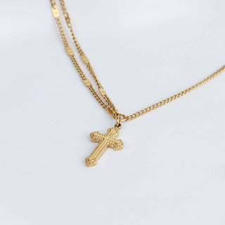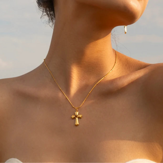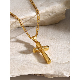ステンレス304 低ニッケル 水に濡れても錆びにくい 18Kゴールドメッキ ネックレス クロス 【YJ02698】
