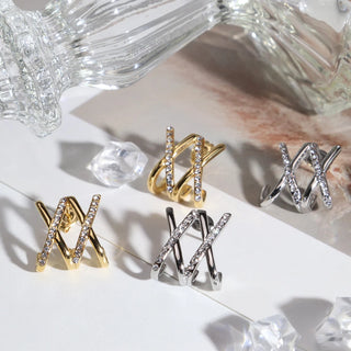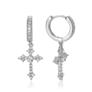 高品質真鍮 A3ランクジルコニア 18Kゴールドメッキ フープ ピアス クロス アイスドアウト ヒップホップ【NJ00060】