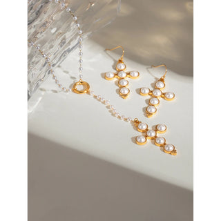 316Lサージカルステンレス 18Kゴールドメッキ ネックレス クロス パール【NY01649】