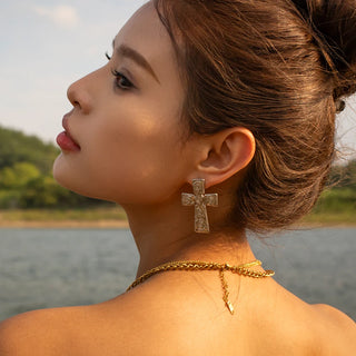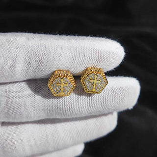 高品質真鍮 A3ランクジルコニア 18Kゴールドメッキ ピアス クロス アイスドアウト ヒップホップ【NJ00057】