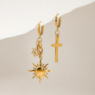 ステンレス304 低ニッケル 水に濡れても錆びにくい 18Kゴールドメッキ ピアス クロス 太陽 【YJ02590】