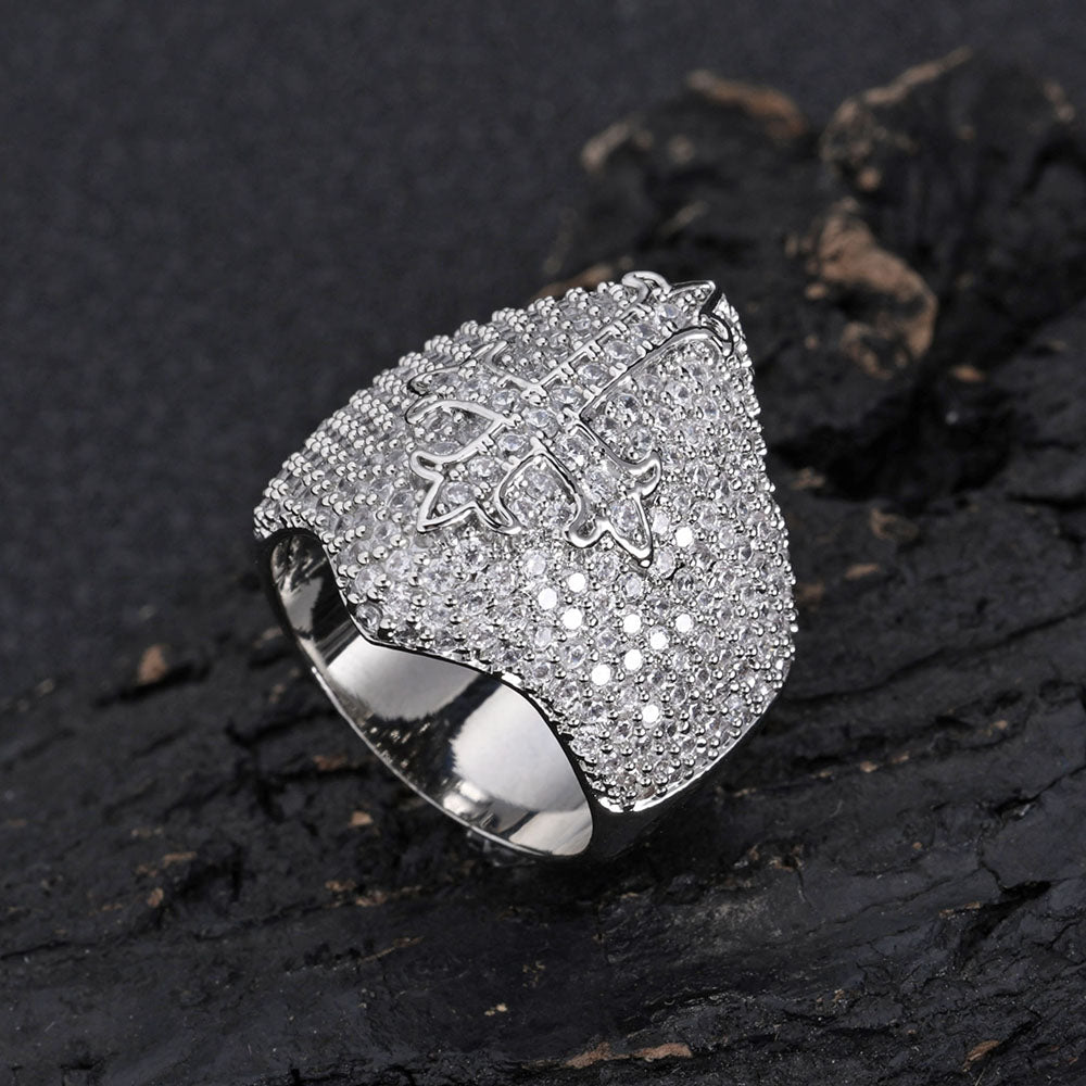 高品質真鍮 A3ランクジルコニア 18Kゴールドメッキ リング クロス アイスドアウト ヒップホップ【NJ00005】