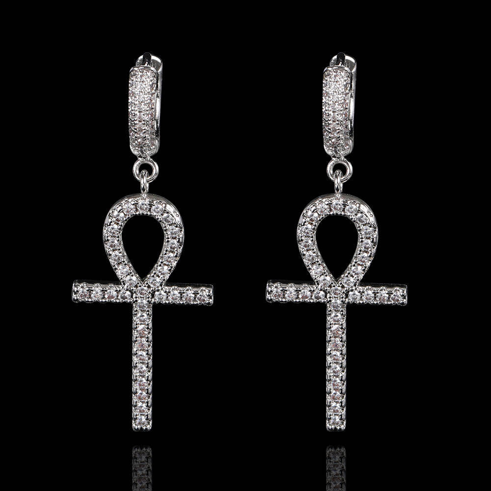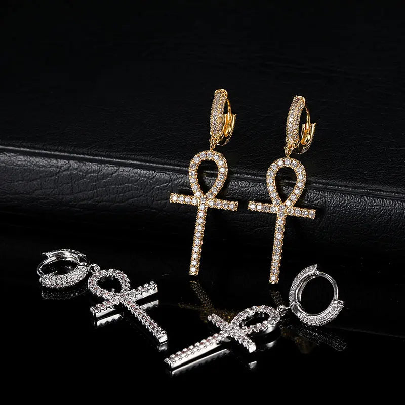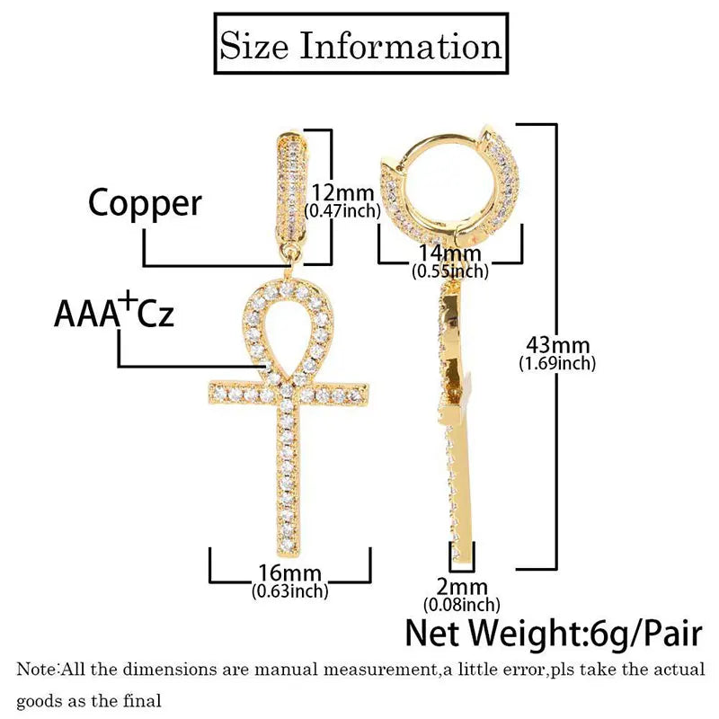 高品質真鍮 A3ランクジルコニア 18Kゴールドメッキ フープ ピアス クロス アイスドアウト ヒップホップ【NJ00060】