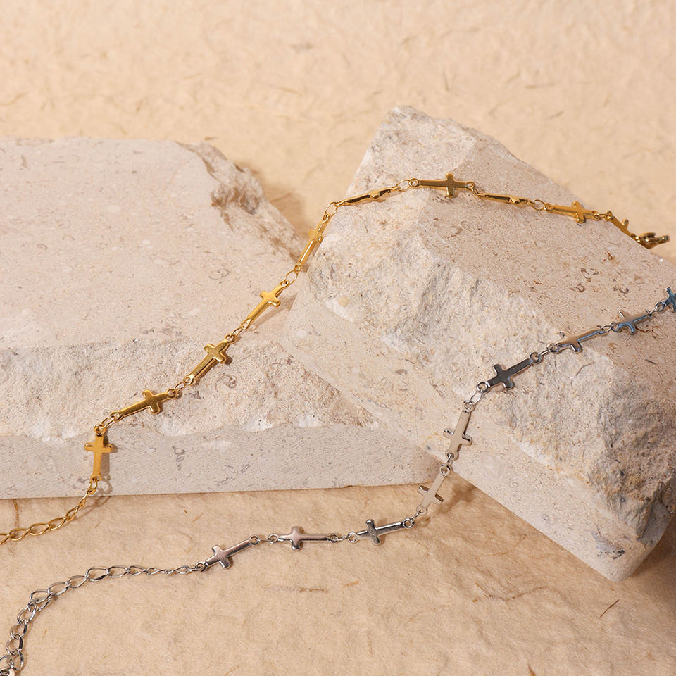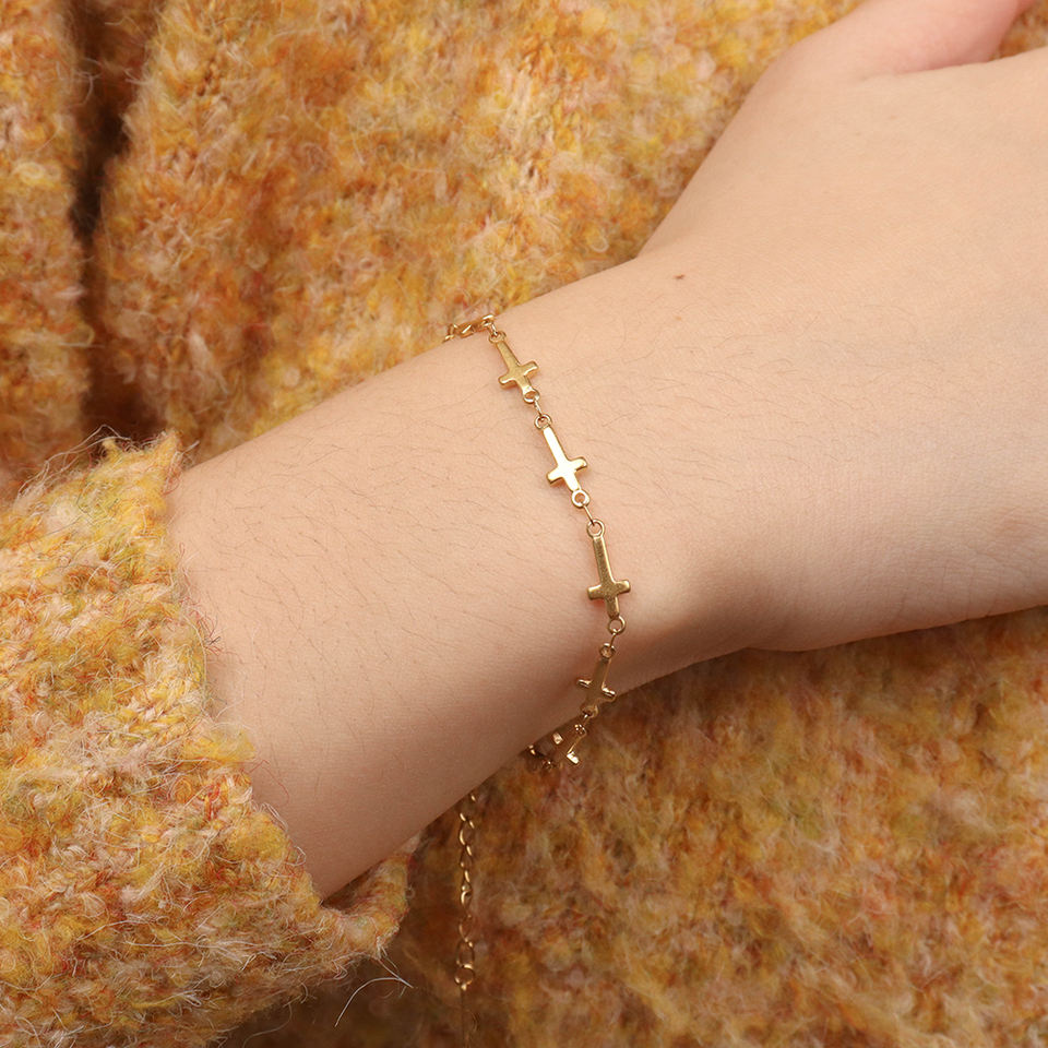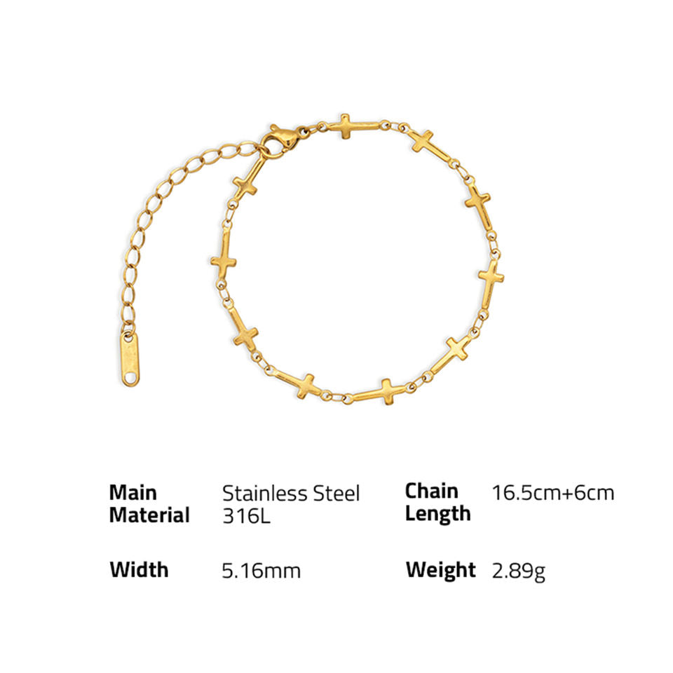 316Lサージカルステンレス 18Kゴールドメッキ ブレスレット チャーム クロス 【NY00780】