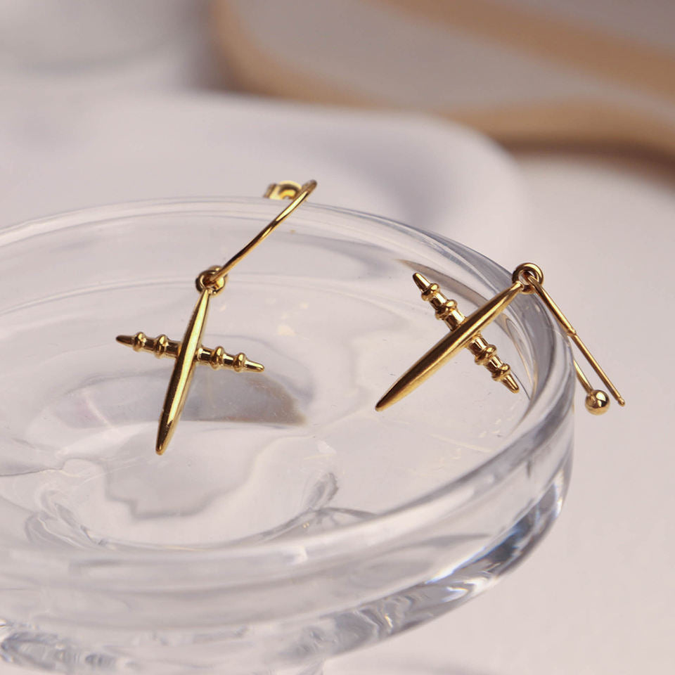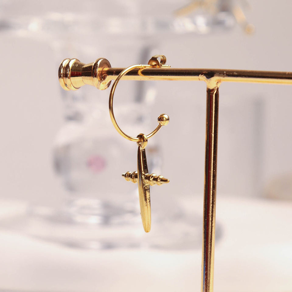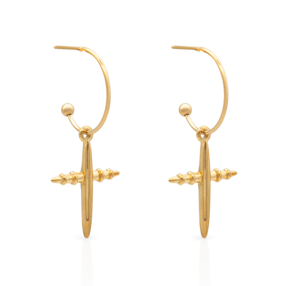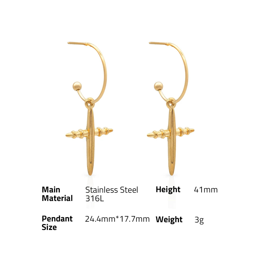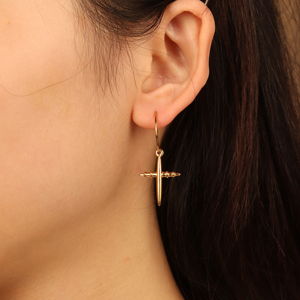 316Lサージカルステンレス 18Kゴールドメッキ ピアス フープ クロス 【NY01285】