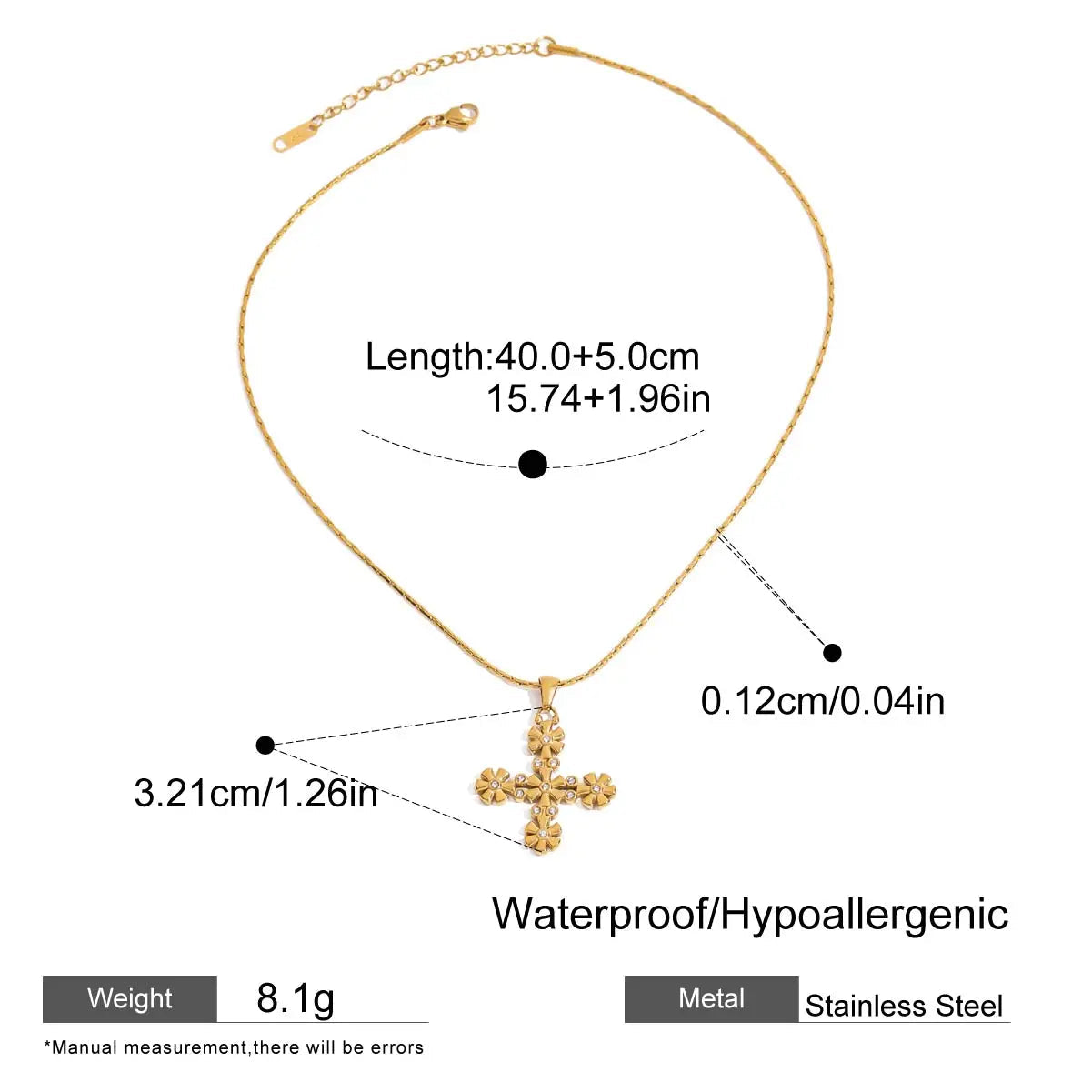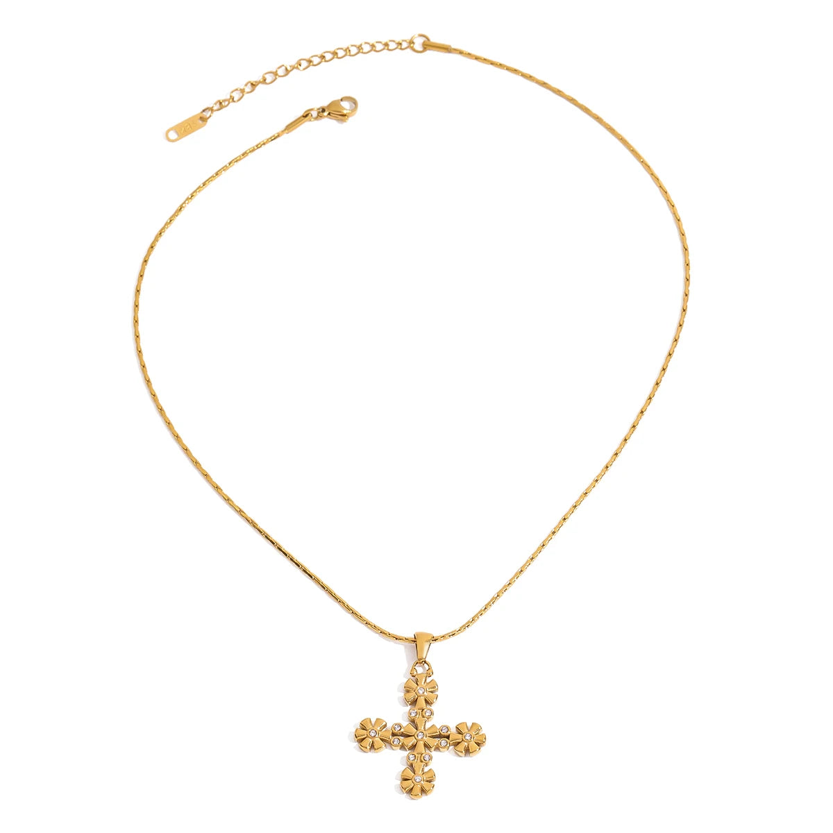 ステンレス304 低ニッケル 水に濡れても錆びにくい 18Kゴールドメッキ ネックレス クロス フラワー 花 ジルコニア 【YJ01666】