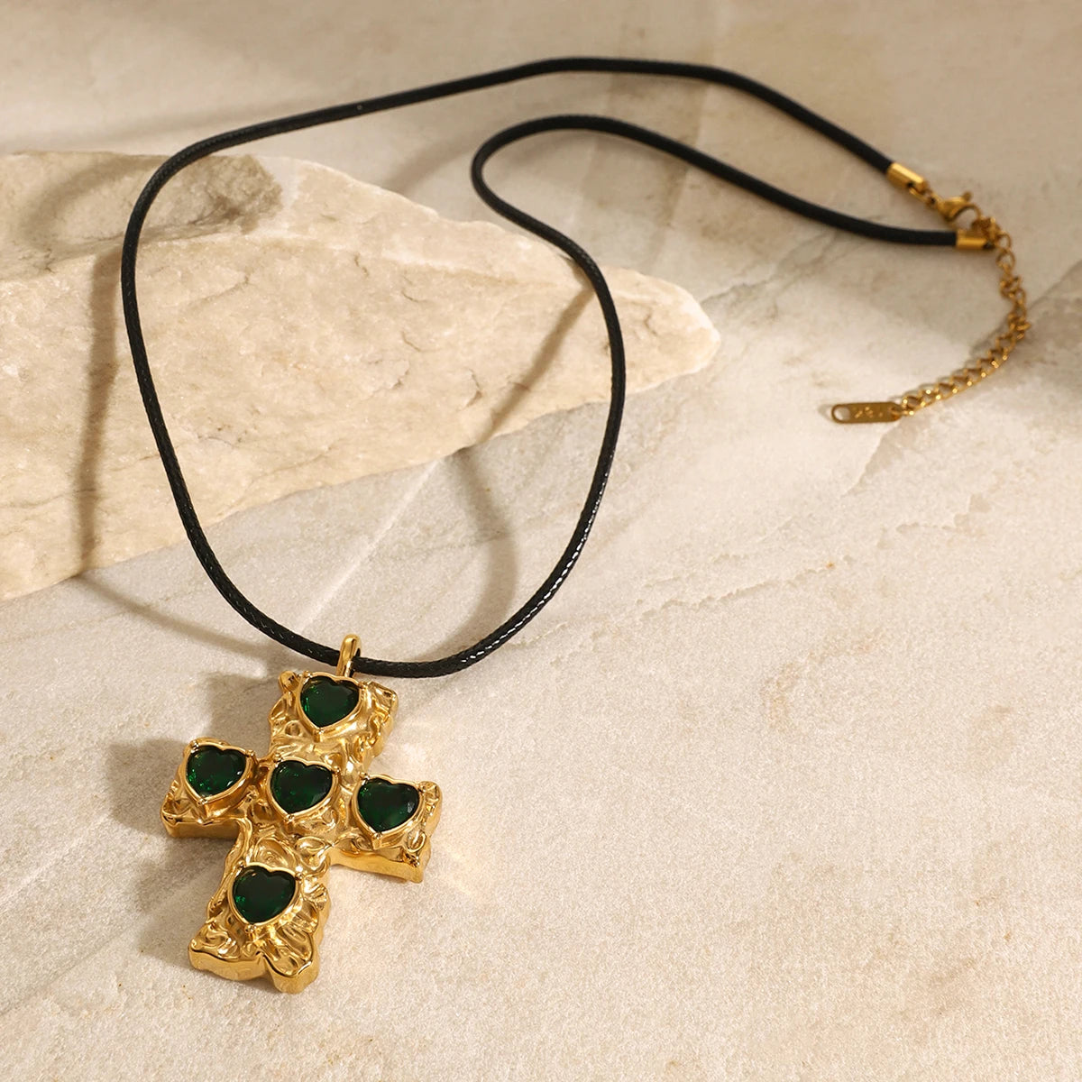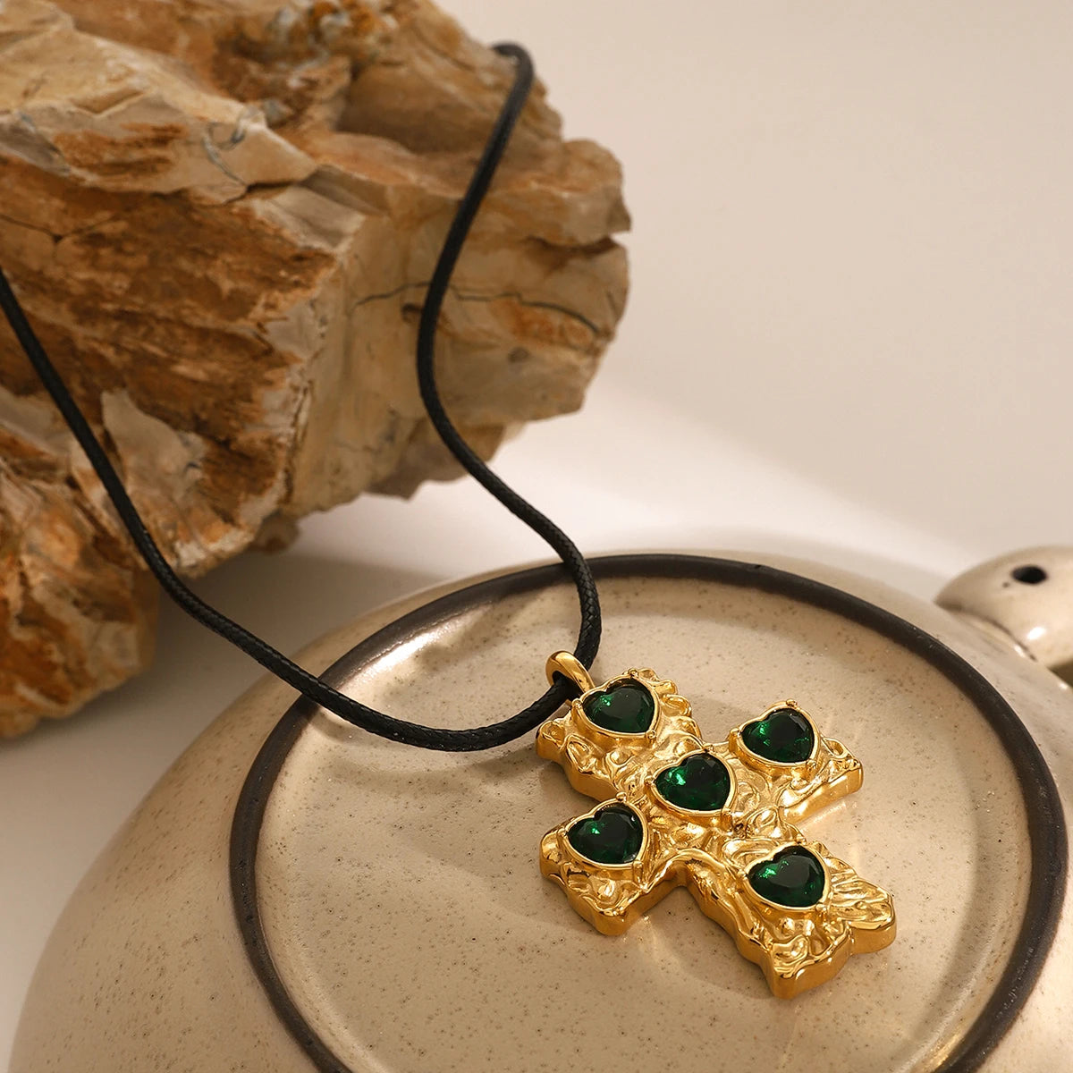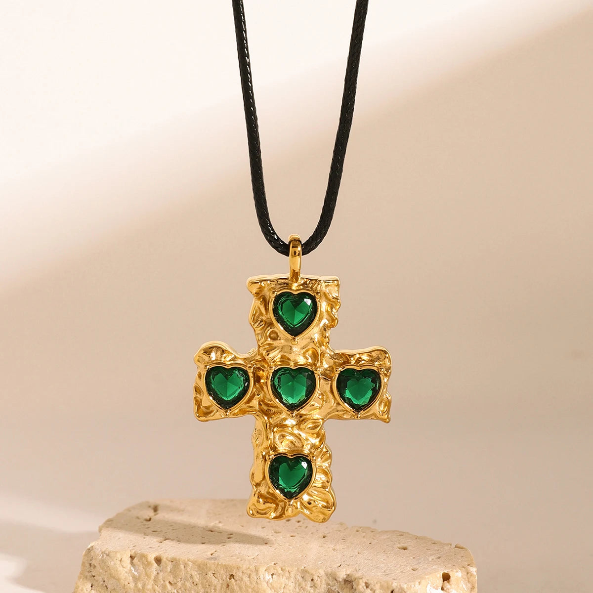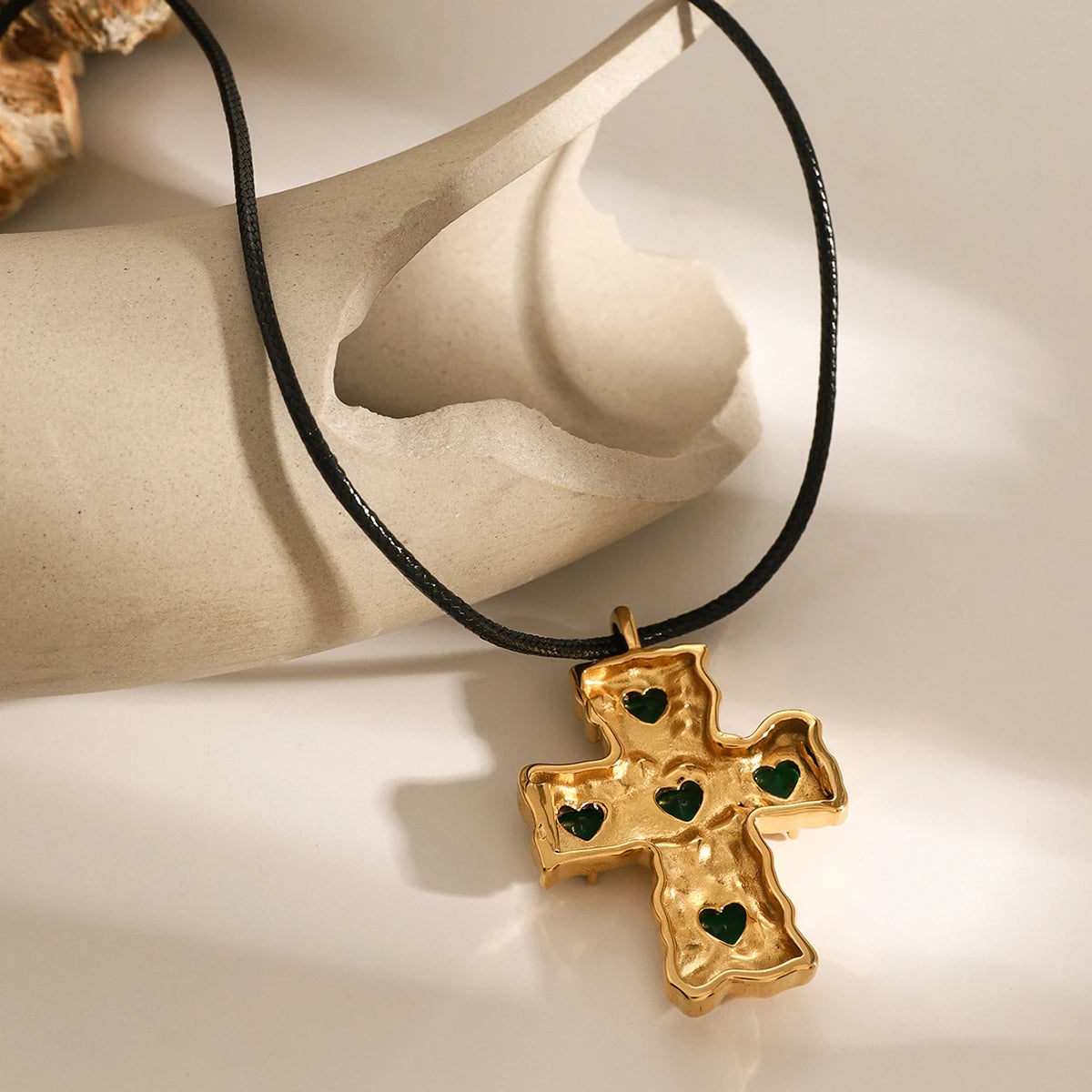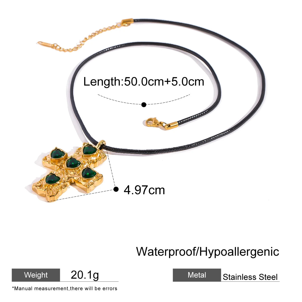 ステンレス304 低ニッケル 水に濡れても錆びにくい 18Kゴールドメッキ ネックレス クロス ジルコニア 【YJ02233】