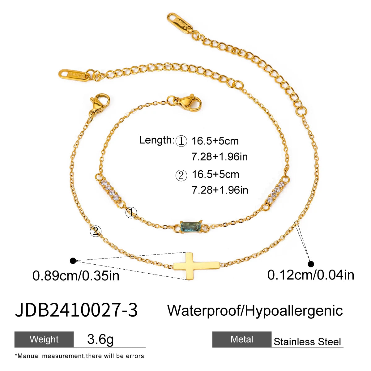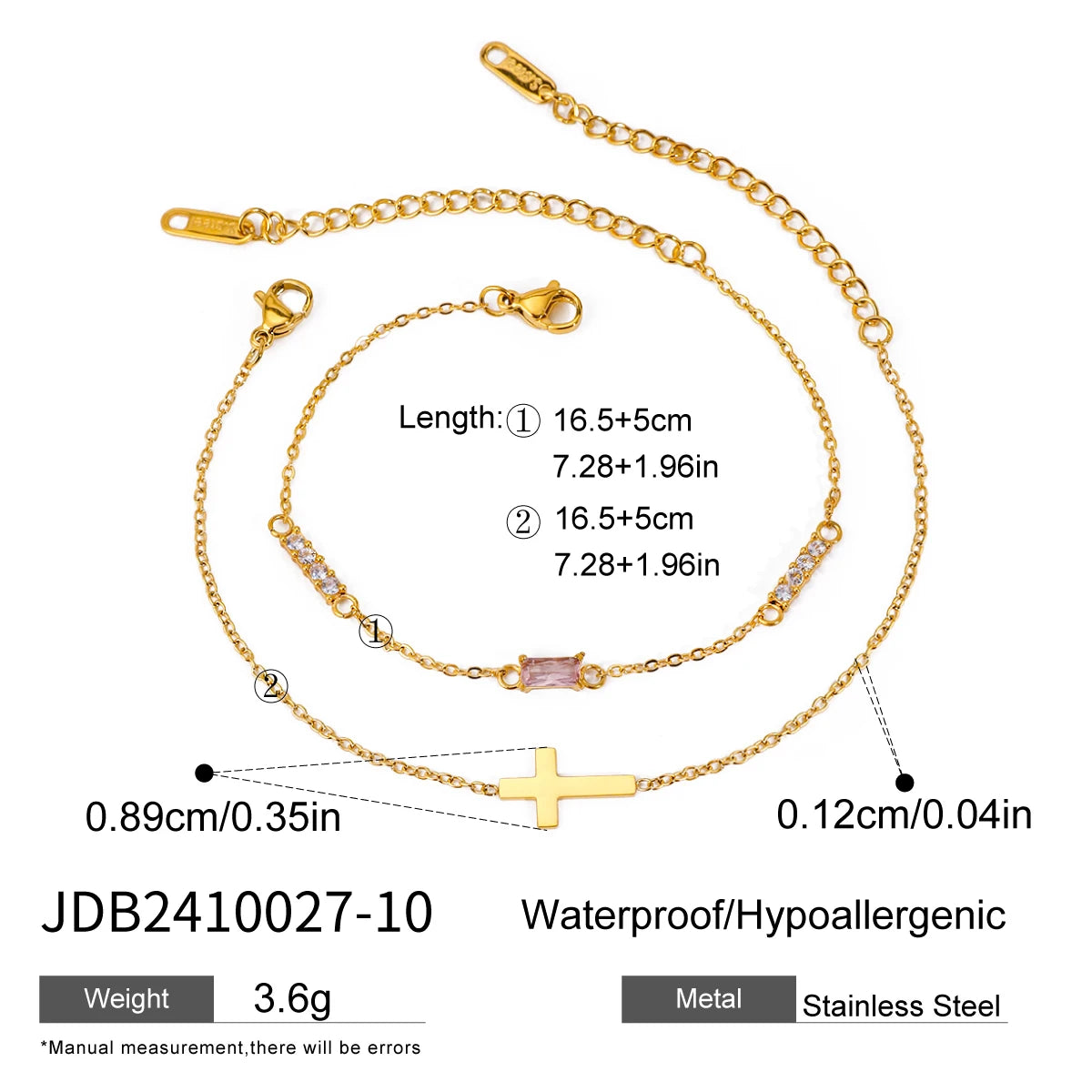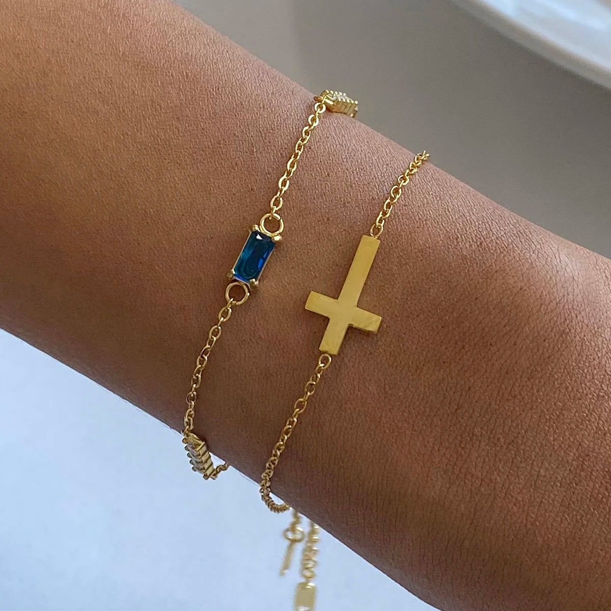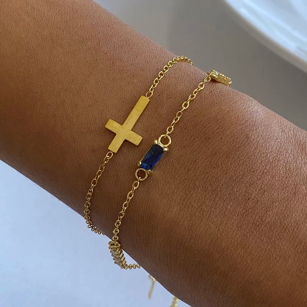 ステンレス304 低ニッケル 水に濡れても錆びにくい 18Kゴールドメッキ ブレスレット チャーム クロス 誕生石 【YJ02774】