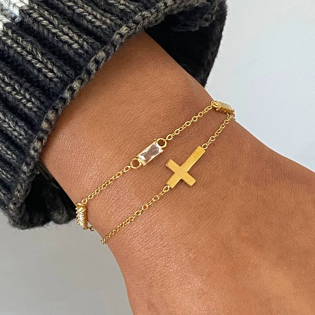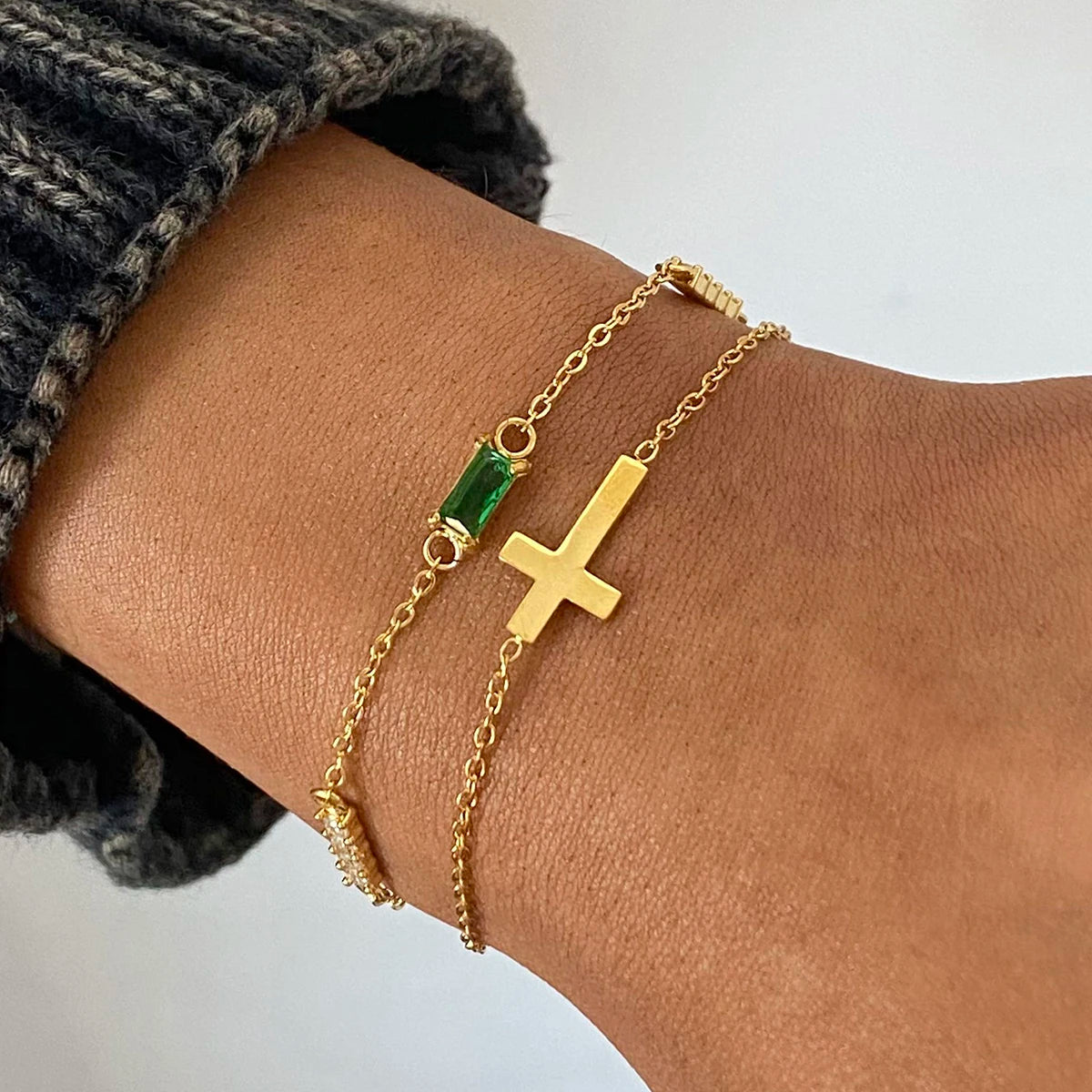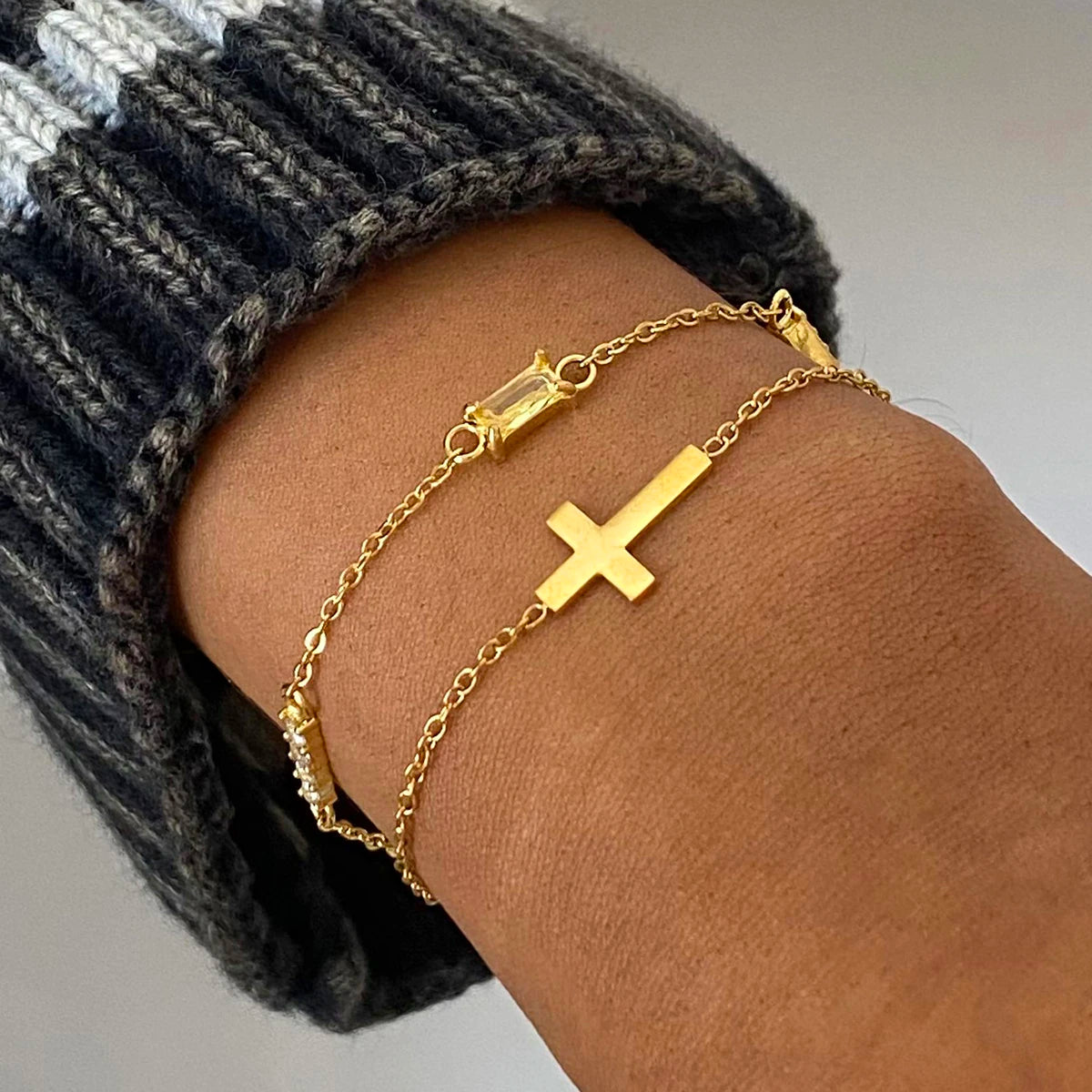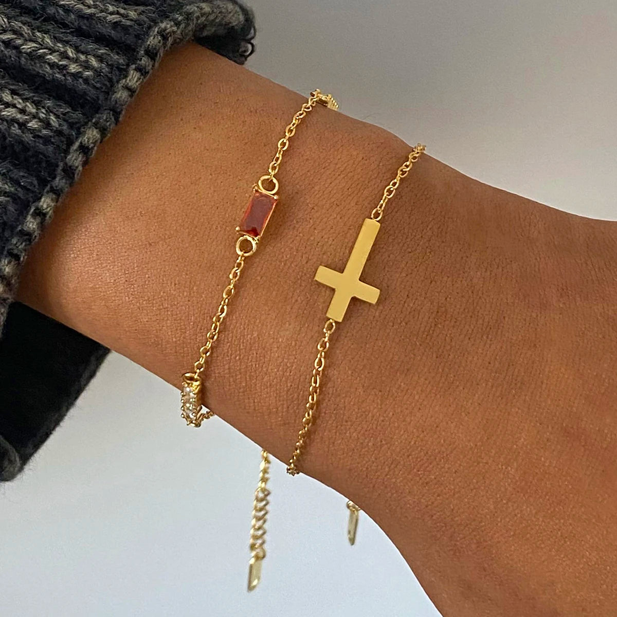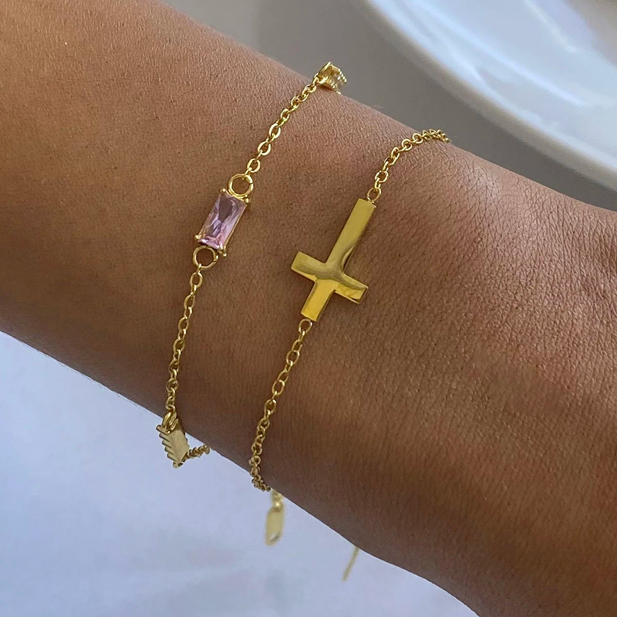 ステンレス304 低ニッケル 水に濡れても錆びにくい 18Kゴールドメッキ ブレスレット チャーム クロス 誕生石 【YJ02774】