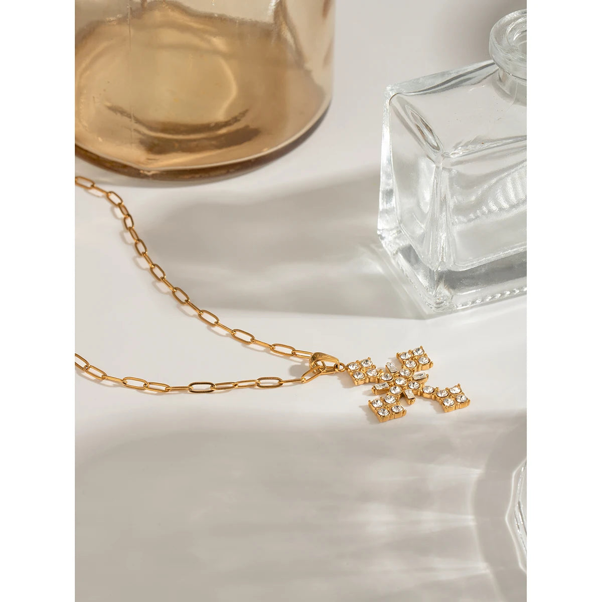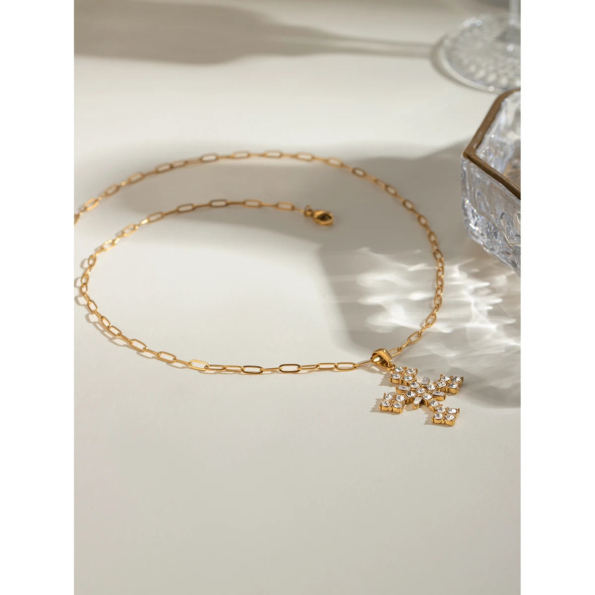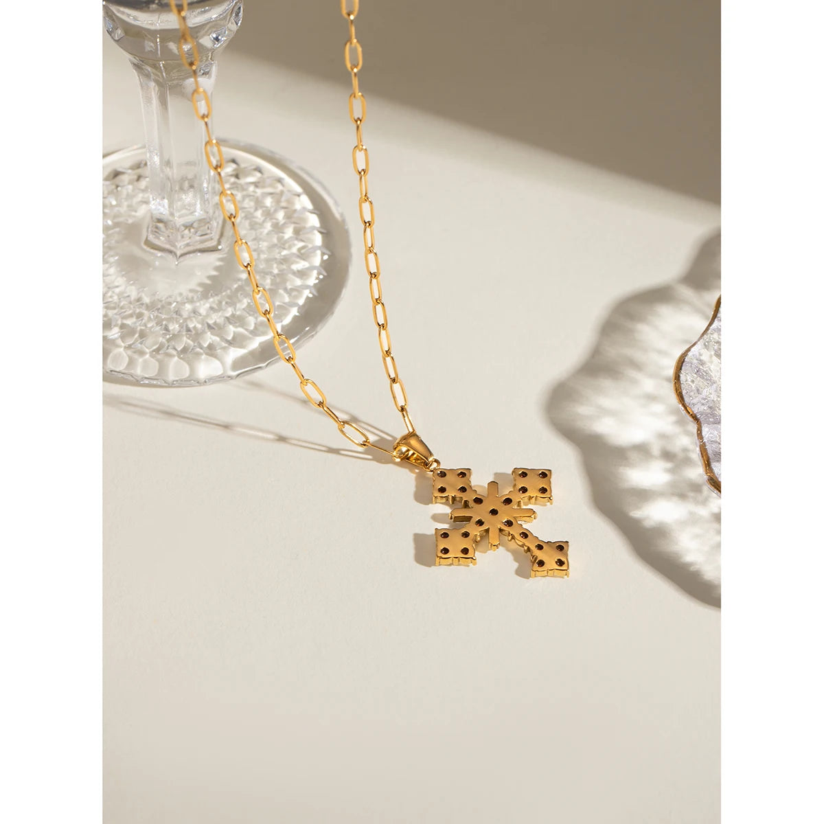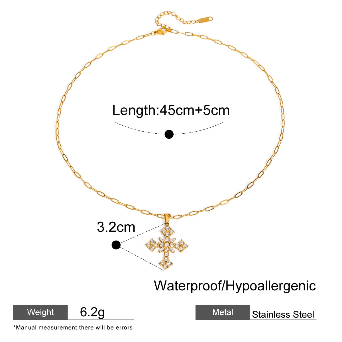 ステンレス304 低ニッケル 水に濡れても錆びにくい 18Kゴールドメッキ ネックレス クロス ジルコニア 【YJ02857】
