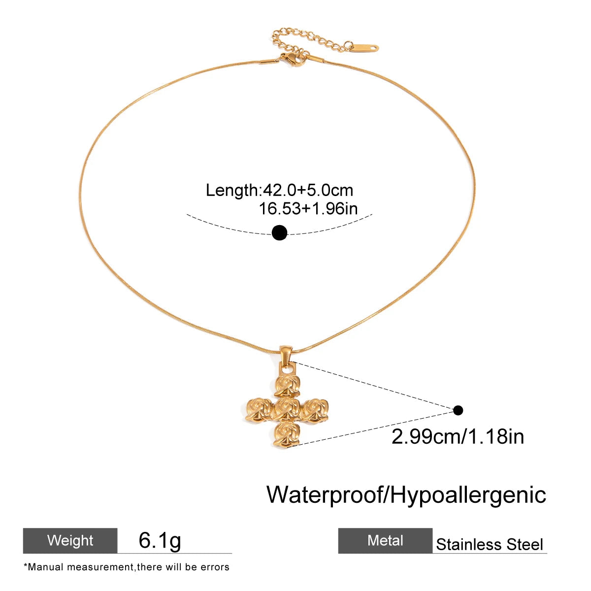 ステンレス304 低ニッケル 水に濡れても錆びにくい 18Kゴールドメッキ ネックレス スネークチェーン クロス 薔薇 ローズ 【YJ03139】