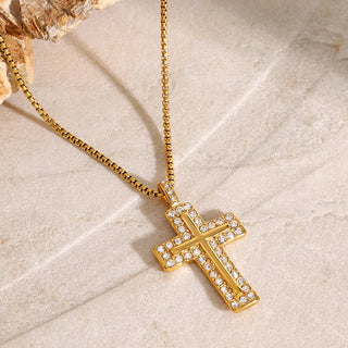 ステンレス304 低ニッケル 水に濡れても錆びにくい 18Kゴールドメッキ ネックレス クロス ジルコニア【YJ03264】