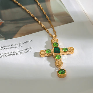 ステンレス304 低ニッケル 水に濡れても錆びにくい 18Kゴールドメッキ ネックレス クロス ジルコニア 誕生石 【YJ03107】