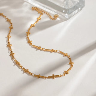 ステンレス304 低ニッケル 水に濡れても錆びにくい 18Kゴールドメッキ ネックレス チェーン クロス 【YJ03073】
