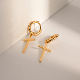 ステンレス304 低ニッケル 水に濡れても錆びにくい 18Kゴールドメッキ ピアス フープ クロス 【YJ01831】