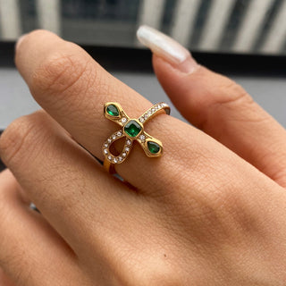 ステンレス304 低ニッケル 水に濡れても錆びにくい 18Kゴールドメッキ リング クロス ジルコニア 【YJ01959】