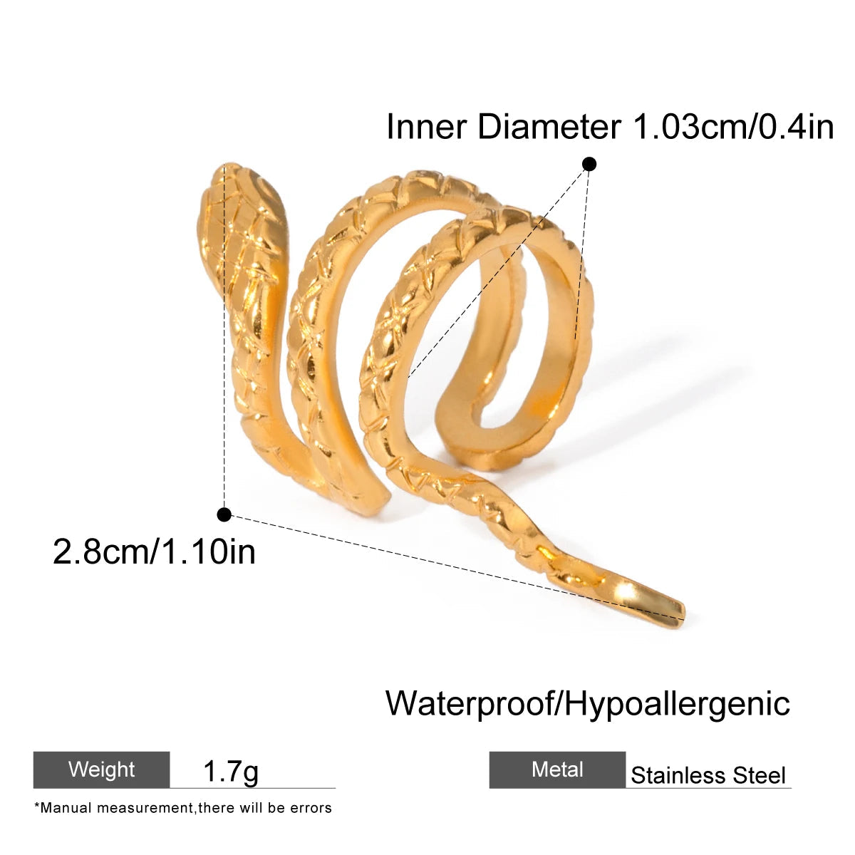 ステンレス304 低ニッケル 水に濡れても錆びにくい 18Kゴールドメッキ イヤーカフ 蛇 ヘビ スネーク 【YJ01453】