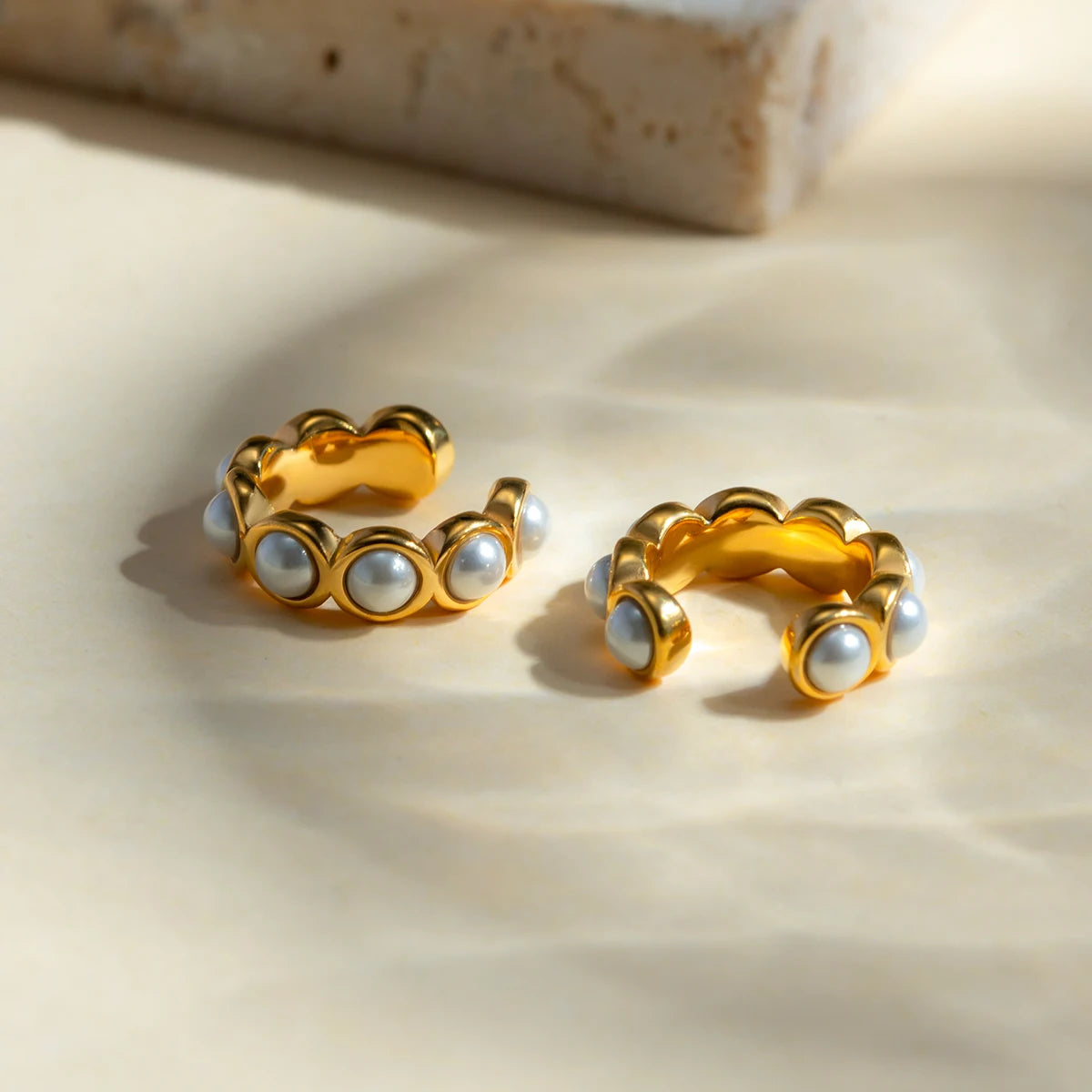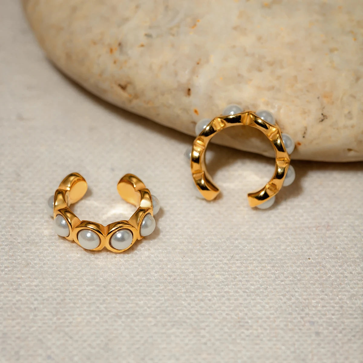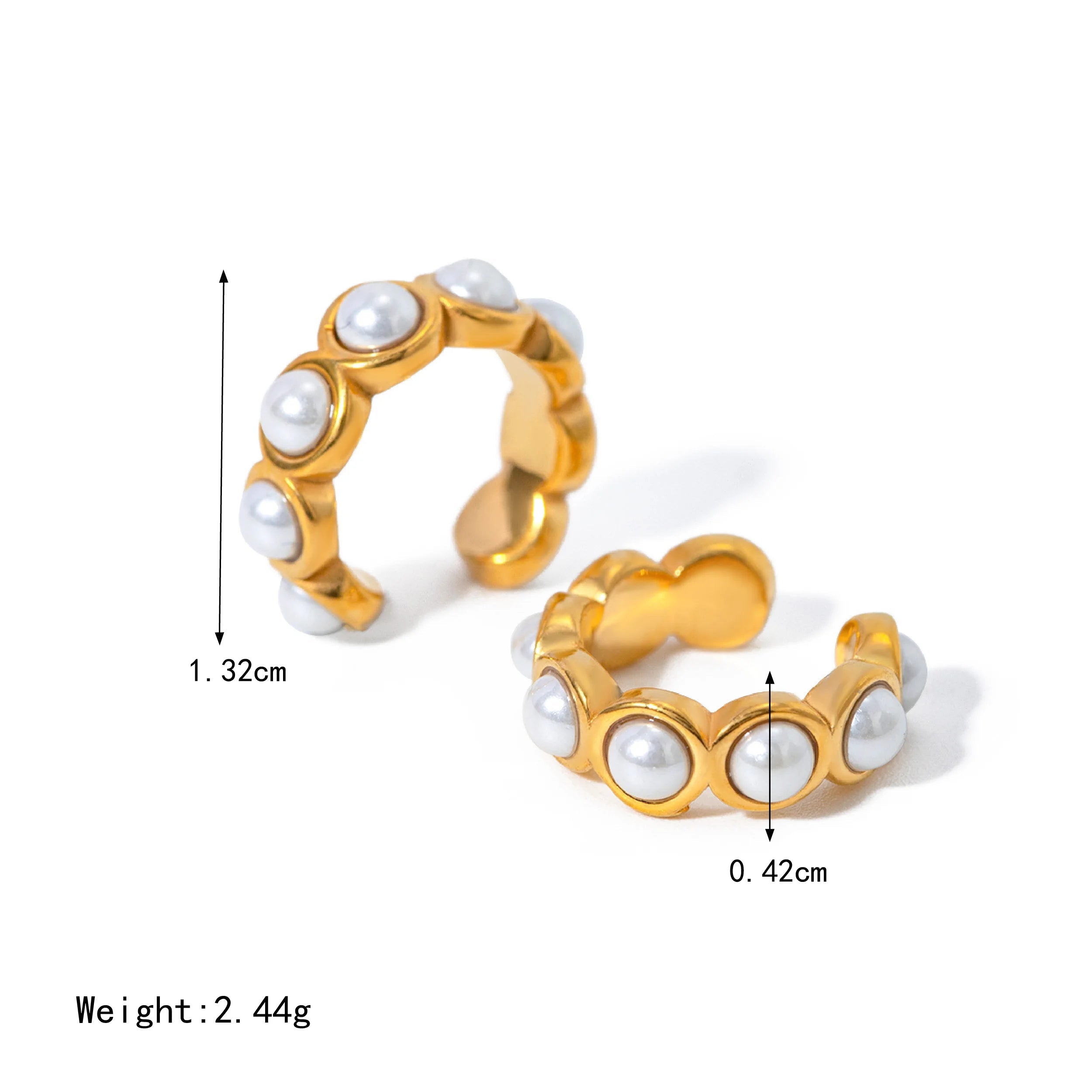 ステンレス304 低ニッケル 水に濡れても錆びにくい 18Kゴールドメッキ イヤーカフ パール 【YJ02398】