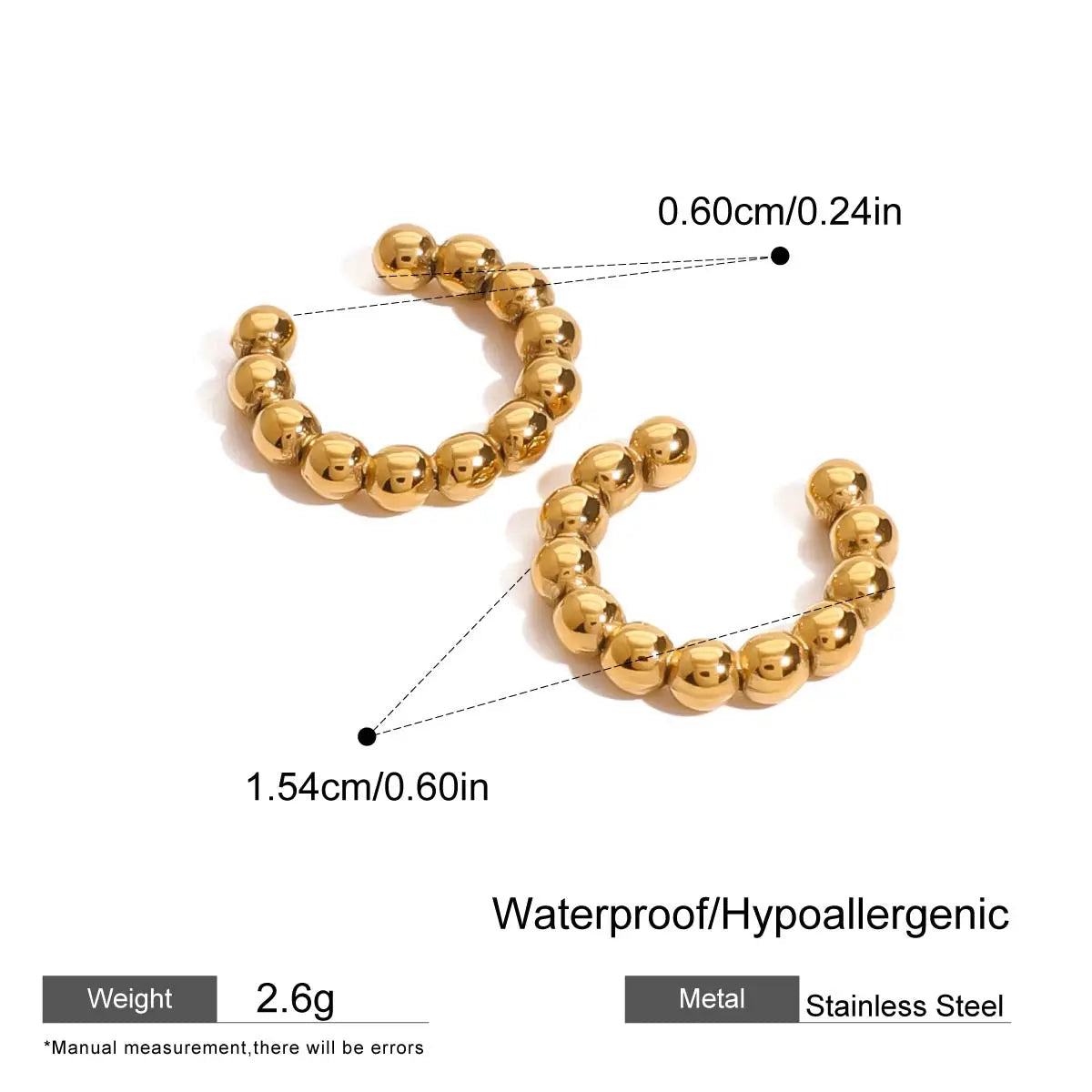 ステンレス304 低ニッケル 水に濡れても錆びにくい 18Kゴールドメッキ イヤーカフ 【YJ02732】