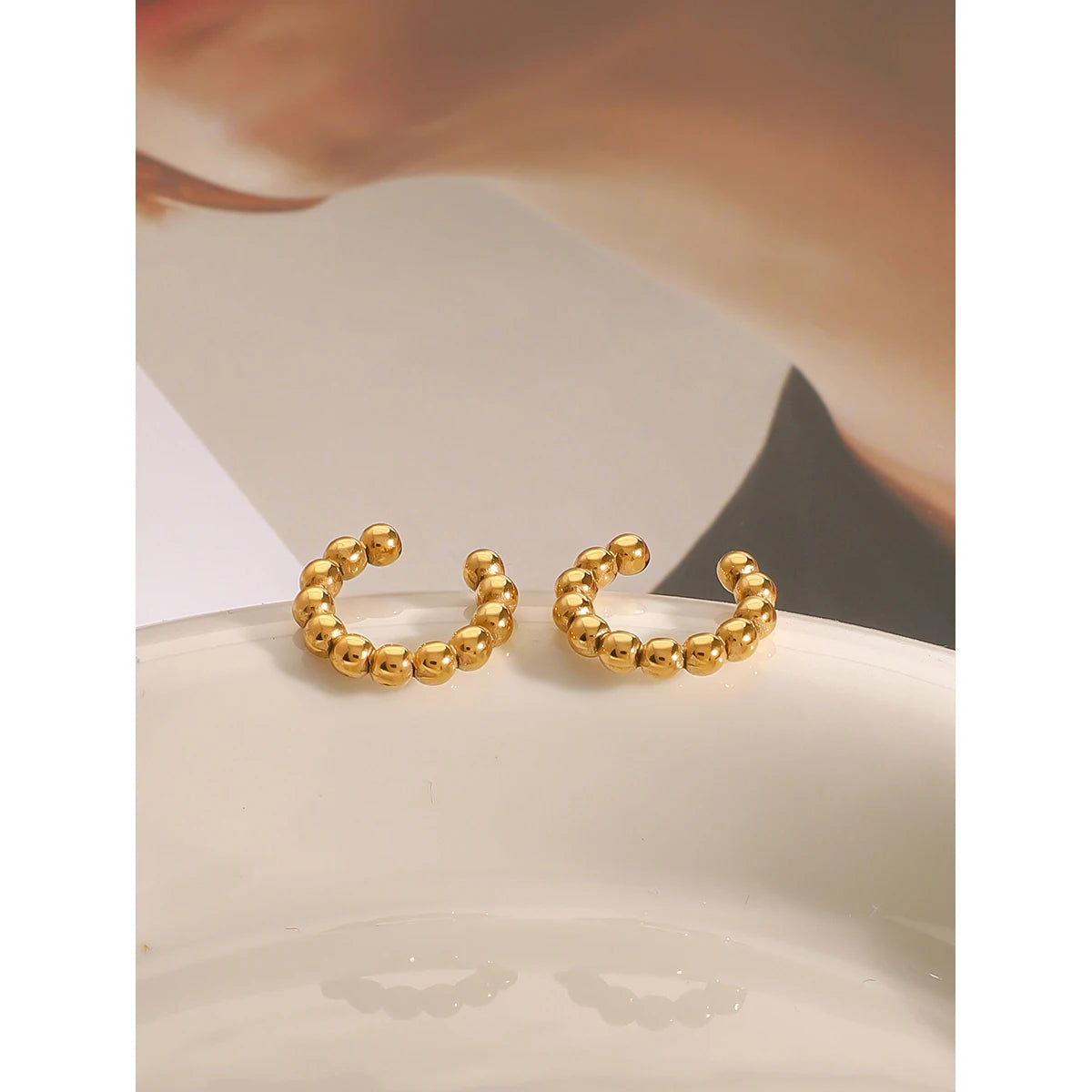- ピアスのポスト部分は素材の特性上、キャッチがきつく感じられる場合や、スムーズに取り外せないことがありますが、これは不良品ではありませんのでご了承ください。特に新品時はゴールドメッキコーティングの厚みにより、やや固めに感じることがございます。無理に力を加えるとポストの曲がりや破損につながる可能性があるため、優しくゆっくりと着脱いただくことをおすすめします。