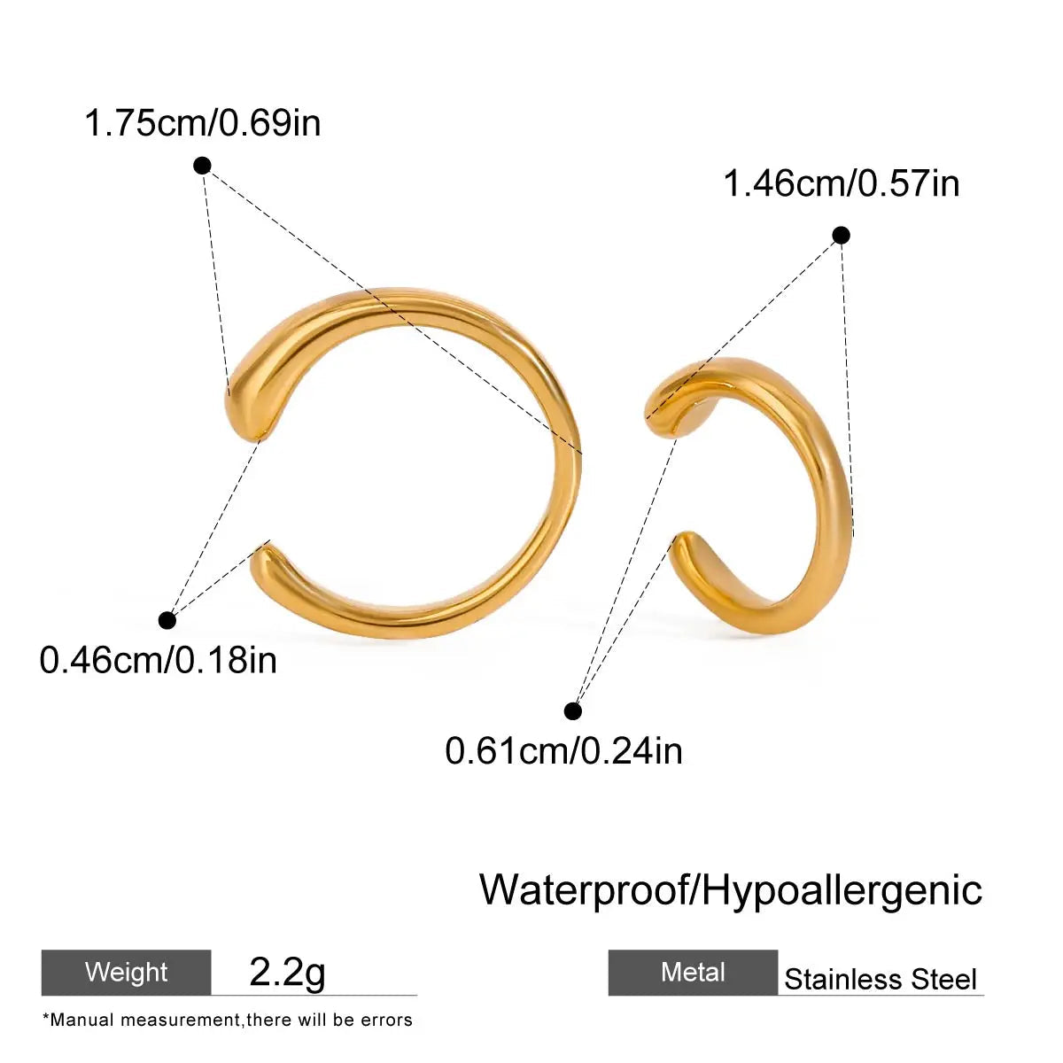 ステンレス304 低ニッケル 水に濡れても錆びにくい 18Kゴールドメッキ イヤーカフ 2点セット 【YJ02987】