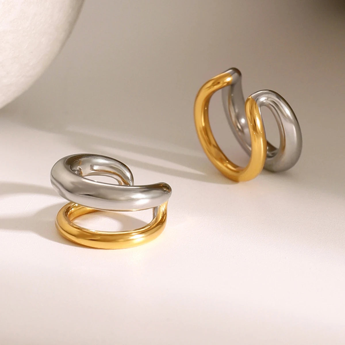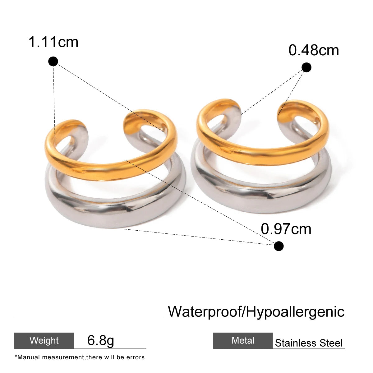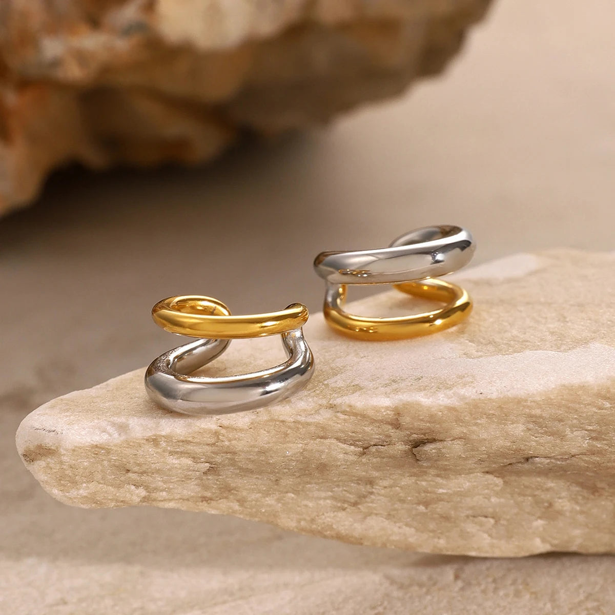 ステンレス304 低ニッケル 水に濡れても錆びにくい 18Kゴールドメッキ イヤーカフ 2層 【YJ03716】