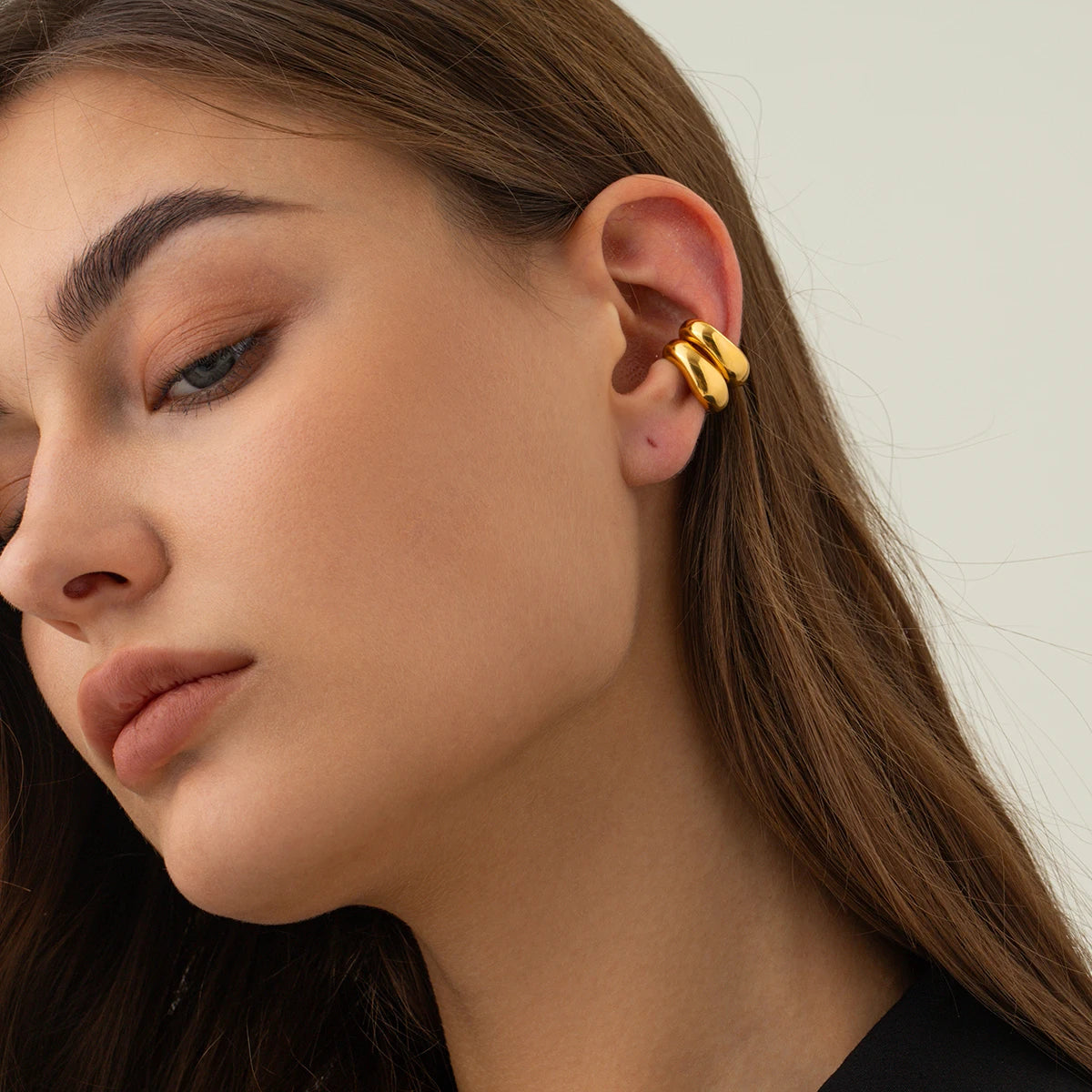 ステンレス304 低ニッケル 水に濡れても錆びにくい 18Kゴールドメッキ イヤーカフ 【YJ03951】