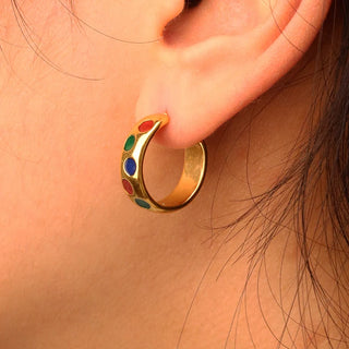 316Lサージカルステンレス 18Kゴールドメッキ ピアス フープ エナメル【NY01811】