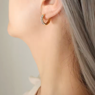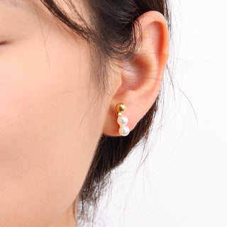 316Lサージカルステンレス 18Kゴールドメッキ ピアス フープ パール【NY01839】