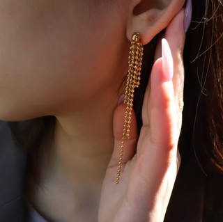 316Lサージカルステンレス ピアス キューバンチェーン タッセル 【NY01752】