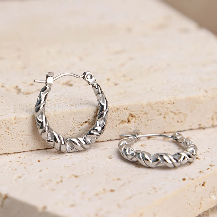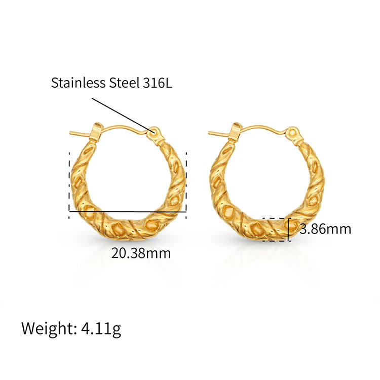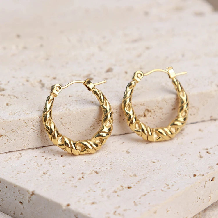 316Lサージカルステンレス 18Kゴールドメッキ ピアス フープ ツイスト 【NY00621】