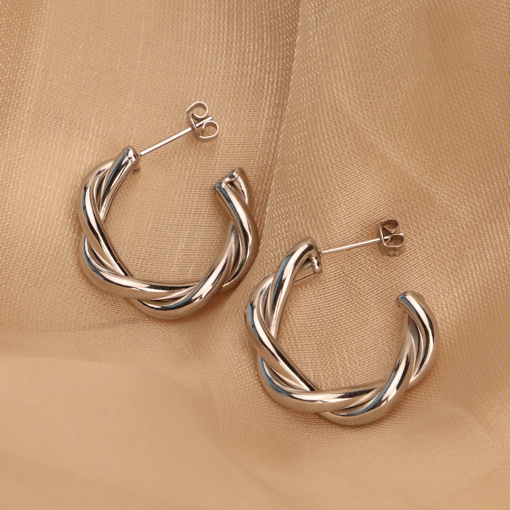 316Lサージカルステンレス ピアス フープ ツイスト 【NY00622】