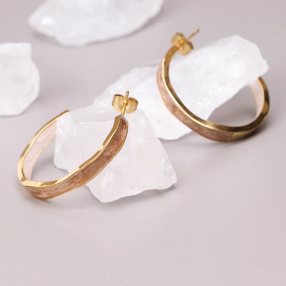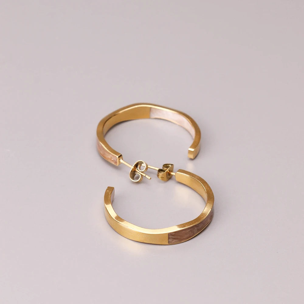 • ピアスのポスト部分は素材の特性上、キャッチがきつく感じられる場合や、スムーズに取り外せないことがありますが、これは不良品ではありませんのでご了承ください。特に新品時はゴールドメッキコーティングの厚みにより、やや固めに感じることがございます。無理に力を加えるとポストの曲がりや破損につながる可能性があるため、優しくゆっくりと着脱いただくことをおすすめします。