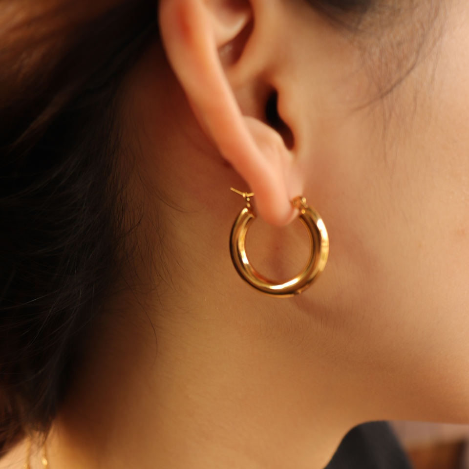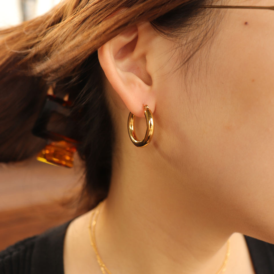 - ピアスのポスト部分は素材の特性上、キャッチがきつく感じられる場合や、スムーズに取り外せないことがありますが、これは不良品ではありませんのでご了承ください。特に新品時はゴールドメッキコーティングの厚みにより、やや固めに感じることがございます。無理に力を加えるとポストの曲がりや破損につながる可能性があるため、優しくゆっくりと着脱いただくことをおすすめします。