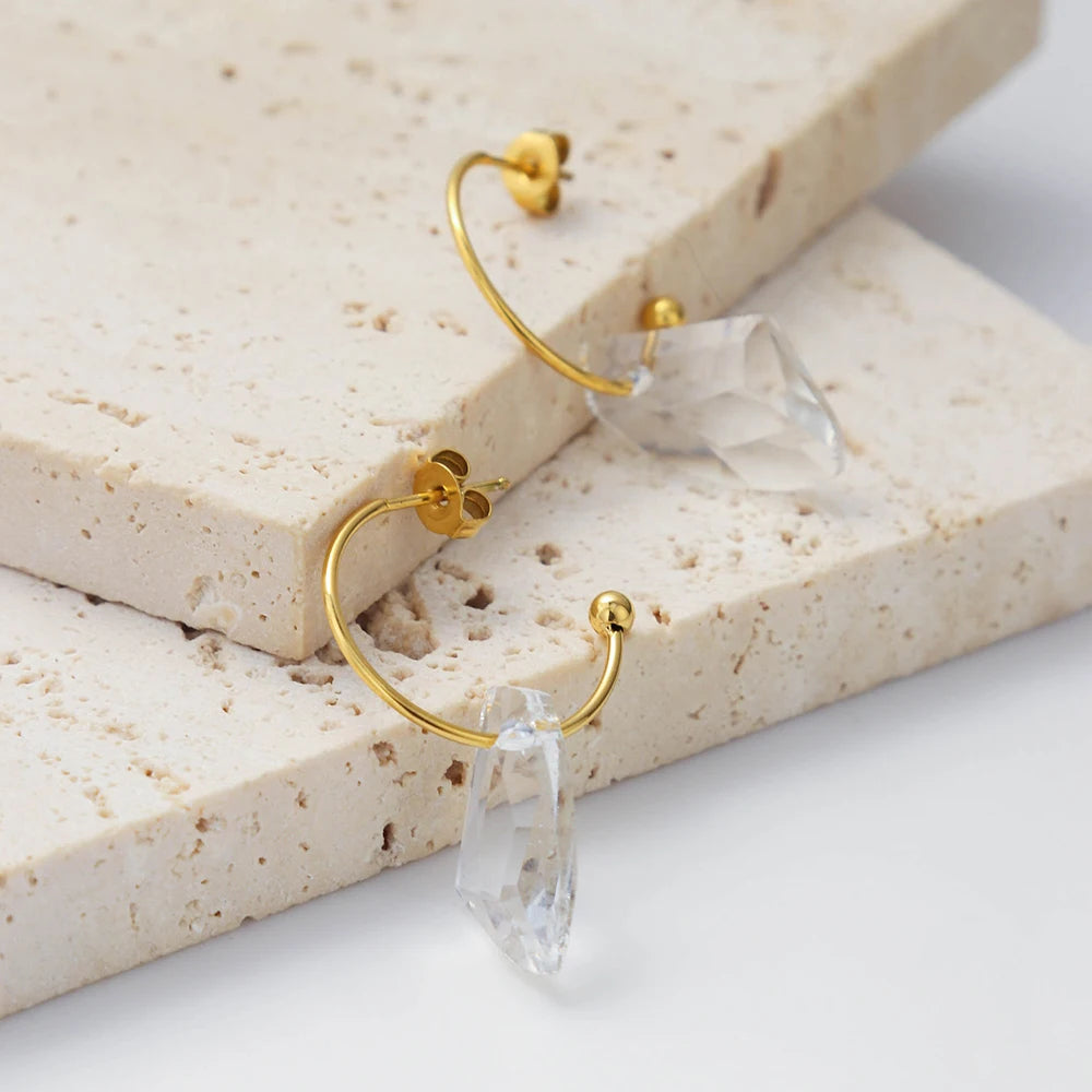 316Lサージカルステンレス ピアス フープ クリスタル【NY00634】
