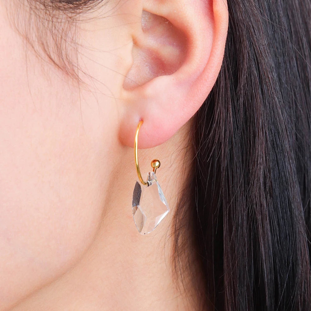 - ピアスのポスト部分は素材の特性上、キャッチがきつく感じられる場合や、スムーズに取り外せないことがありますが、これは不良品ではありませんのでご了承ください。特に新品時はゴールドメッキコーティングの厚みにより、やや固めに感じることがございます。無理に力を加えるとポストの曲がりや破損につながる可能性があるため、優しくゆっくりと着脱いただくことをおすすめします。