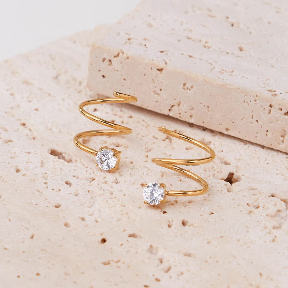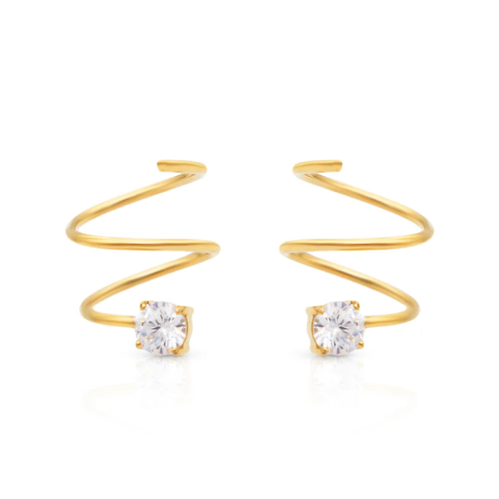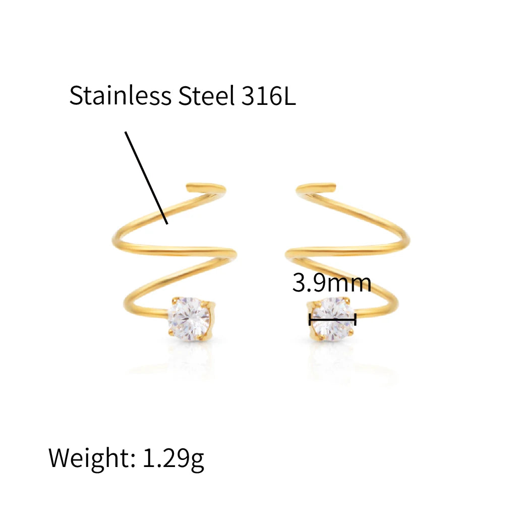 316Lサージカルステンレス 18Kゴールドメッキ ピアス スパイラル ジルコニア【NY00637】