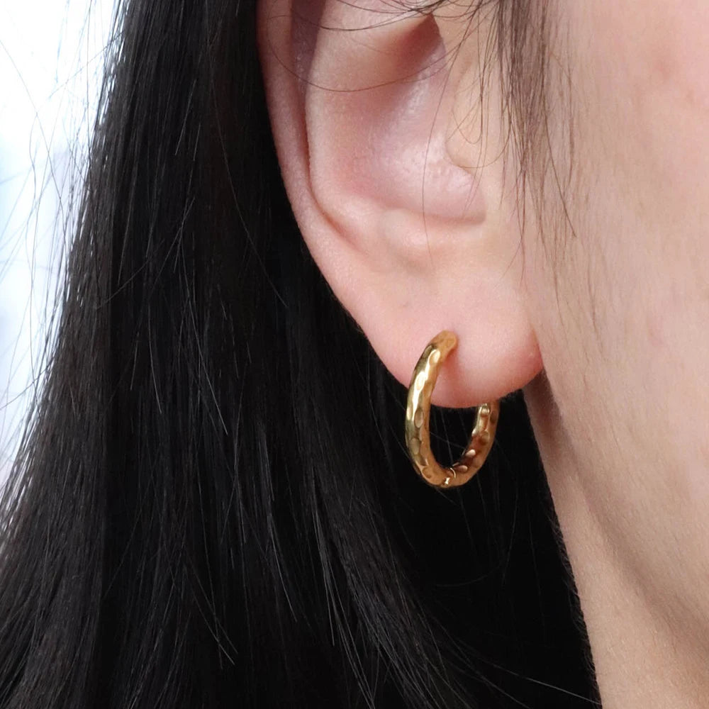 - ピアスのポスト部分は素材の特性上、キャッチがきつく感じられる場合や、スムーズに取り外せないことがありますが、これは不良品ではありませんのでご了承ください。特に新品時はゴールドメッキコーティングの厚みにより、やや固めに感じることがございます。無理に力を加えるとポストの曲がりや破損につながる可能性があるため、優しくゆっくりと着脱いただくことをおすすめします。