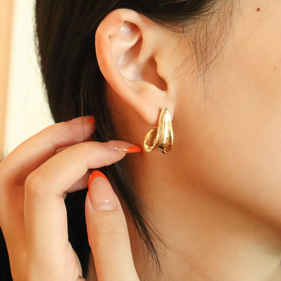 • ピアスのポスト部分は素材の特性上、キャッチがきつく感じられる場合や、スムーズに取り外せないことがありますが、これは不良品ではありませんのでご了承ください。特に新品時はゴールドメッキコーティングの厚みにより、やや固めに感じることがございます。無理に力を加えるとポストの曲がりや破損につながる可能性があるため、優しくゆっくりと着脱いただくことをおすすめします。