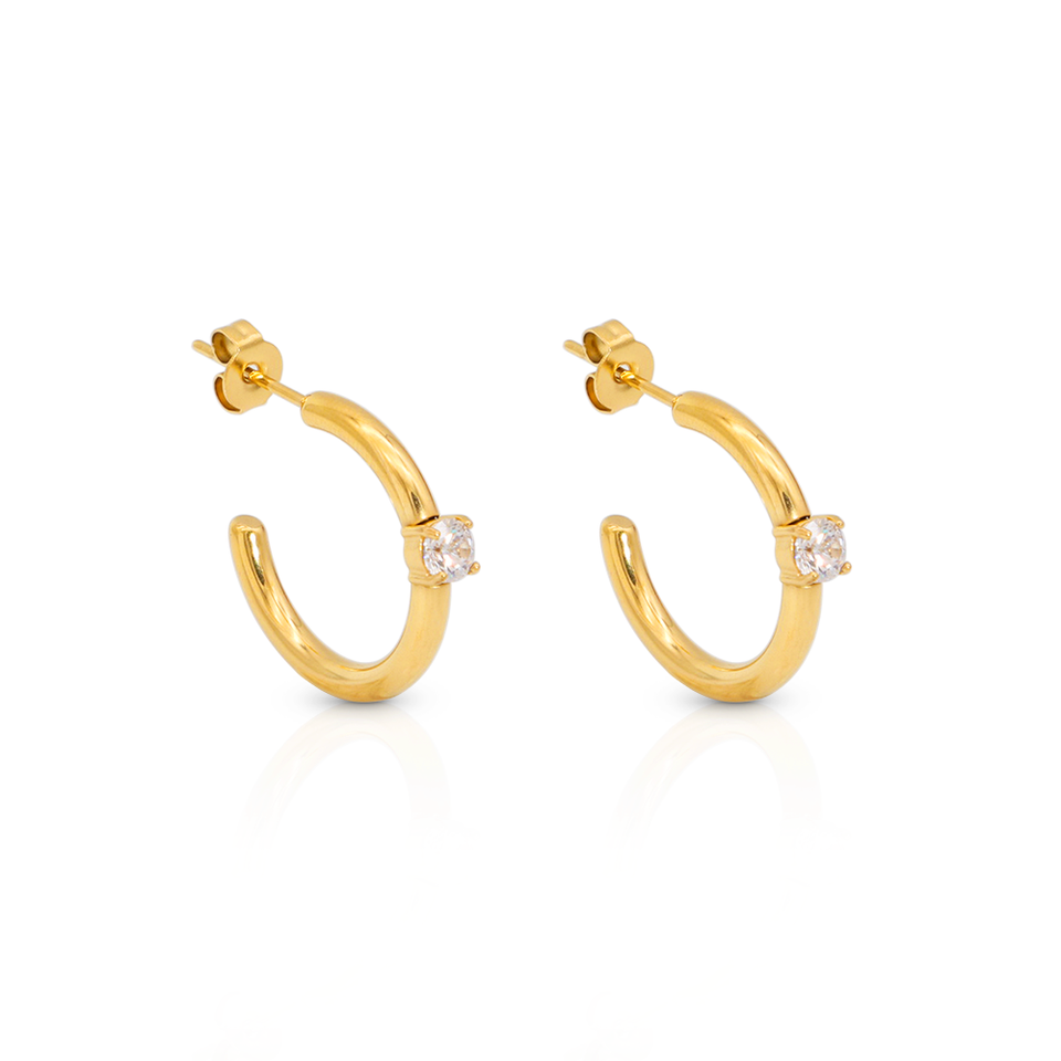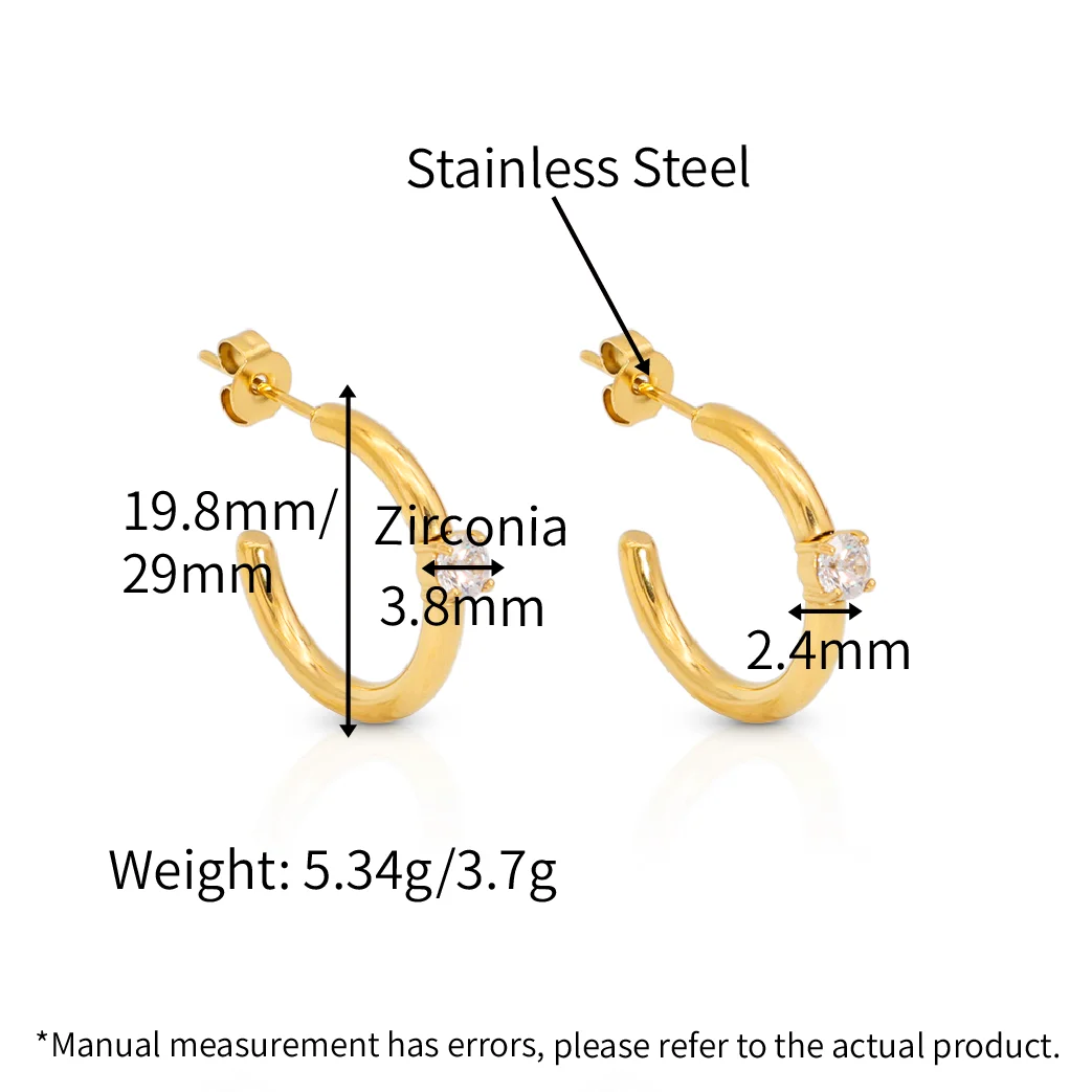 316Lサージカルステンレス 18Kゴールドメッキ ピアス フープ ジルコニア【NY00908】