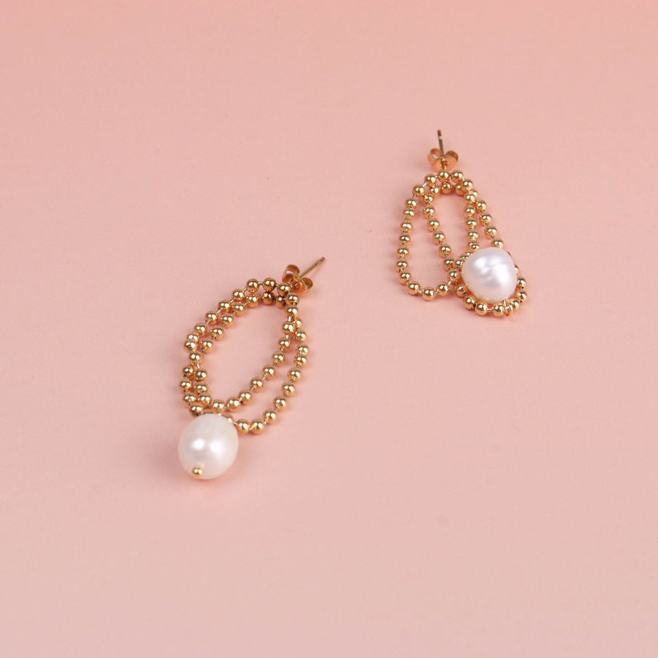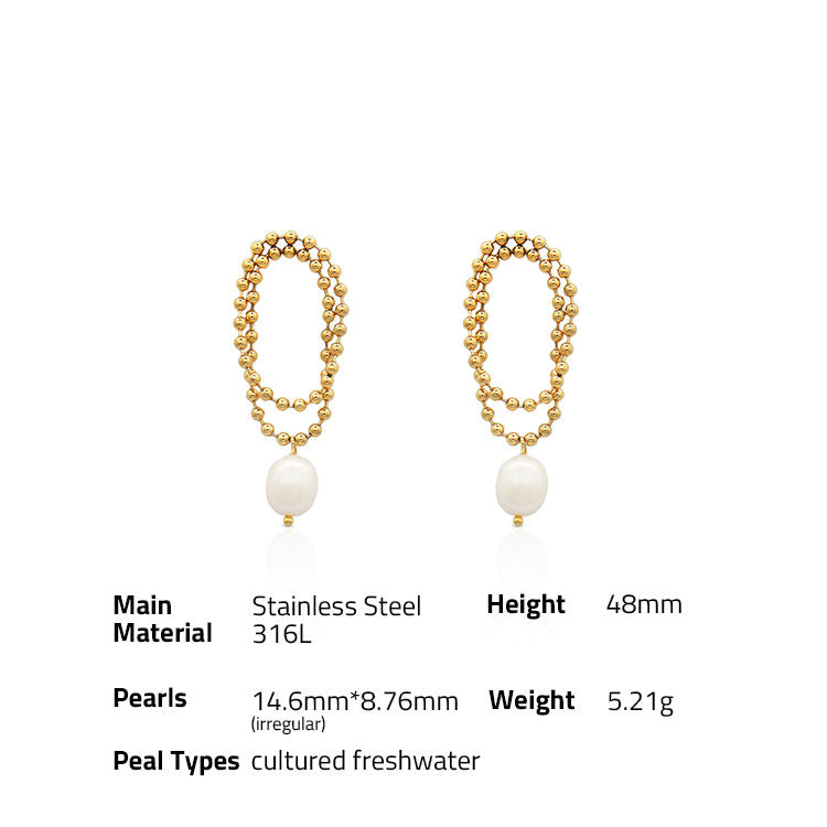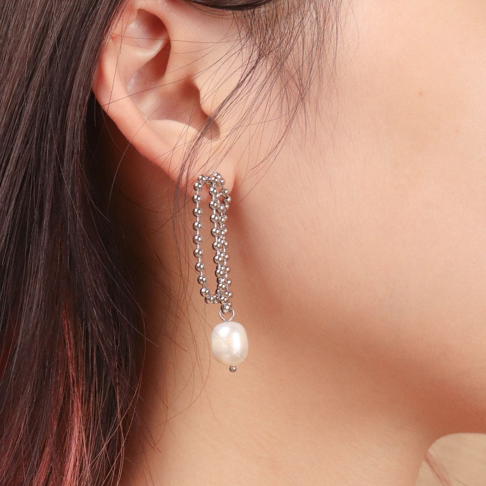316Lサージカルステンレス ピアス チェーン バロックパール【NY00943】