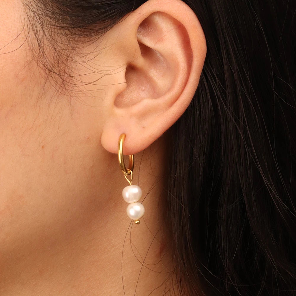 316Lサージカルステンレス ピアス フープ パール【NY00947】