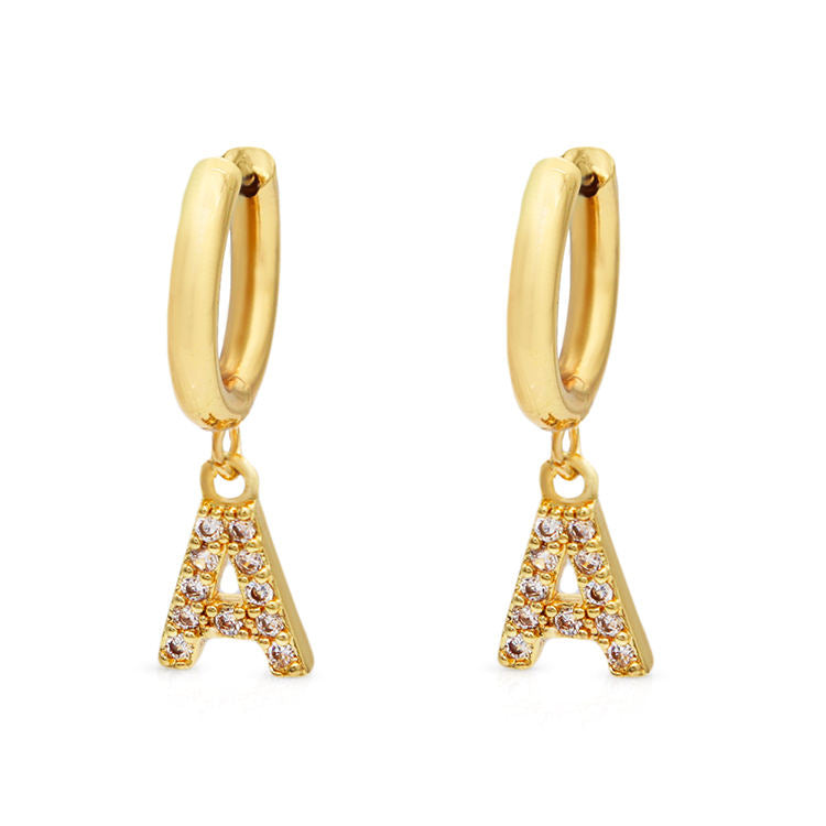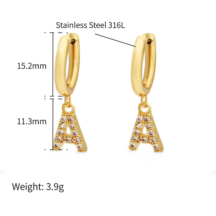 316Lサージカルステンレス ピアス フープ チャーム アルファベット A ジルコニア【NY01420】