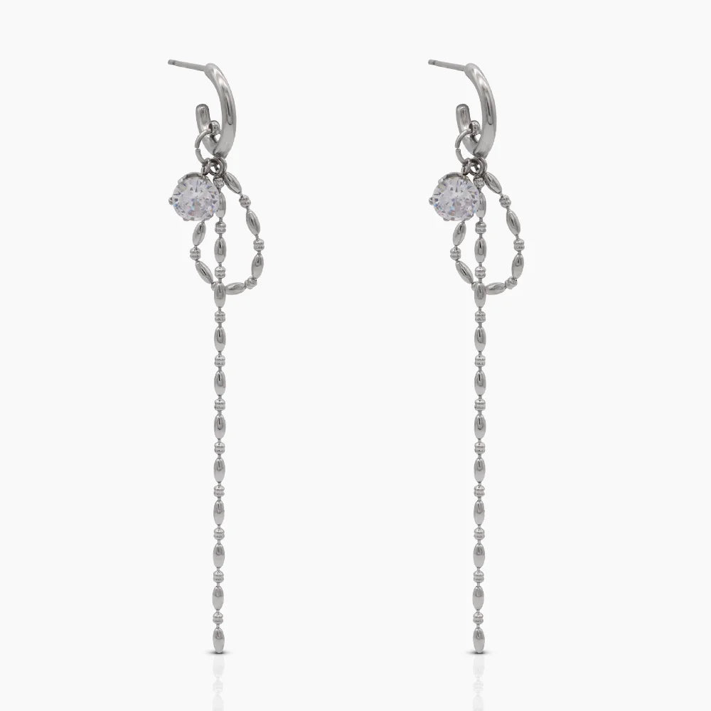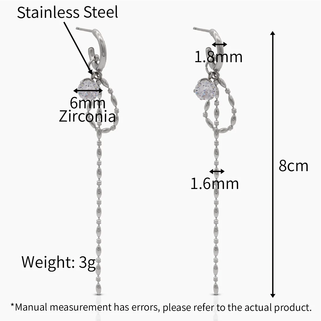 316Lサージカルステンレス ピアス タッセル チェーン ジルコニア【NY01655】