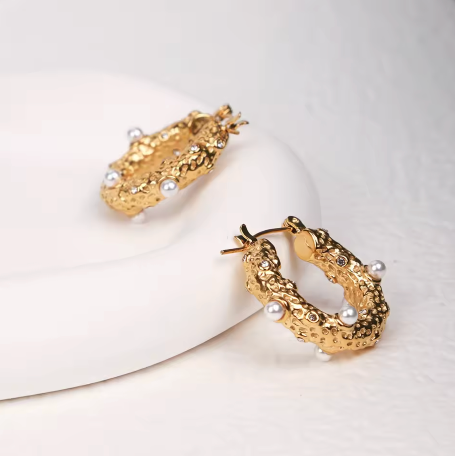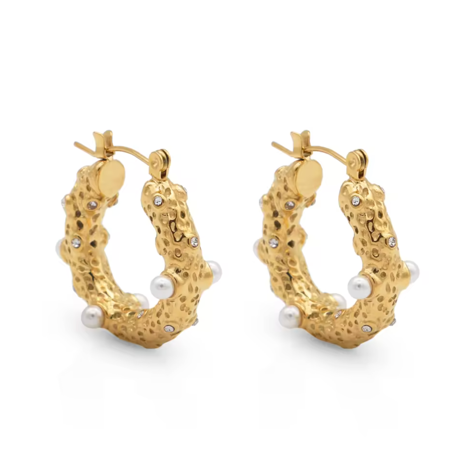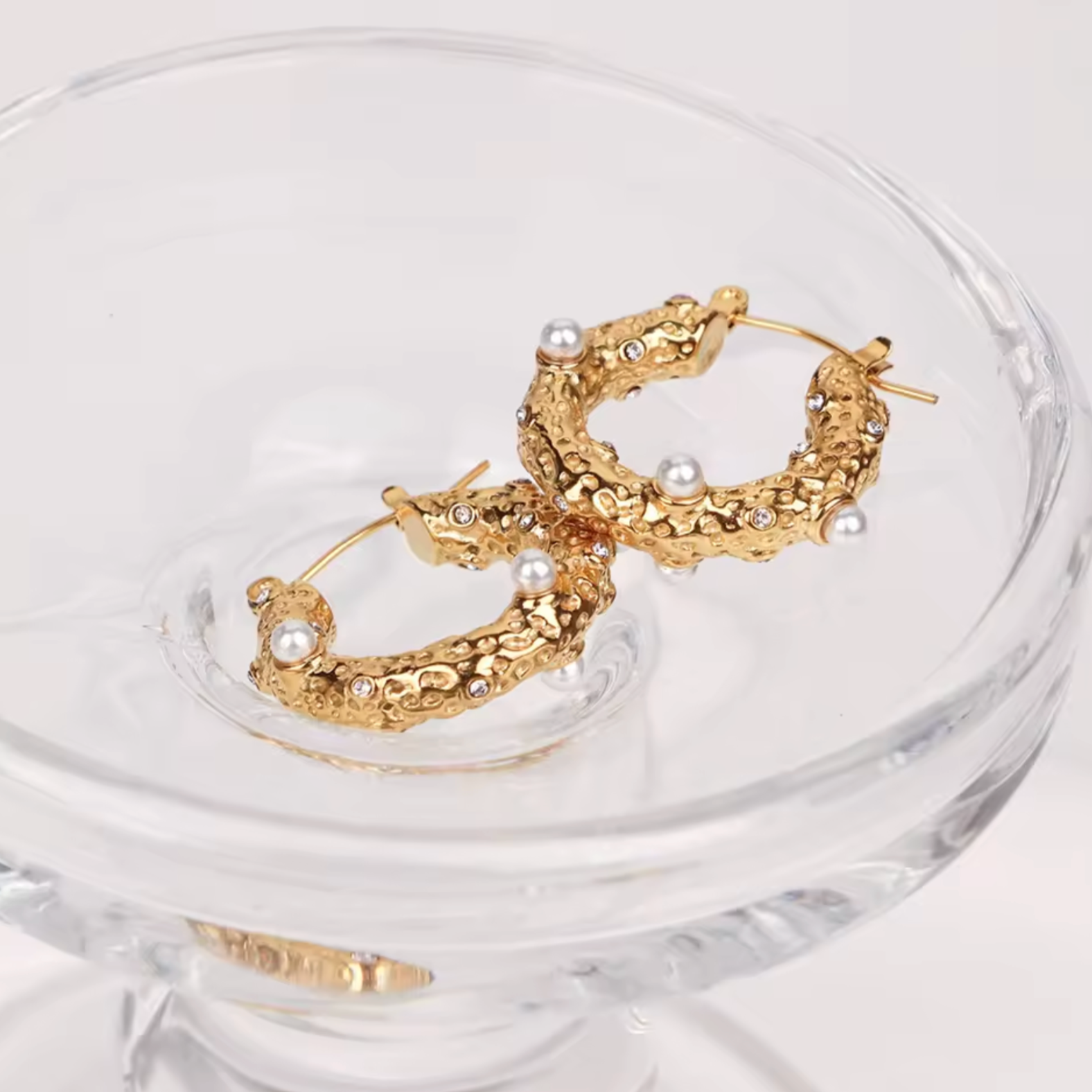 316Lサージカルステンレス ピアス フープ ジルコニア パール【NY01666】